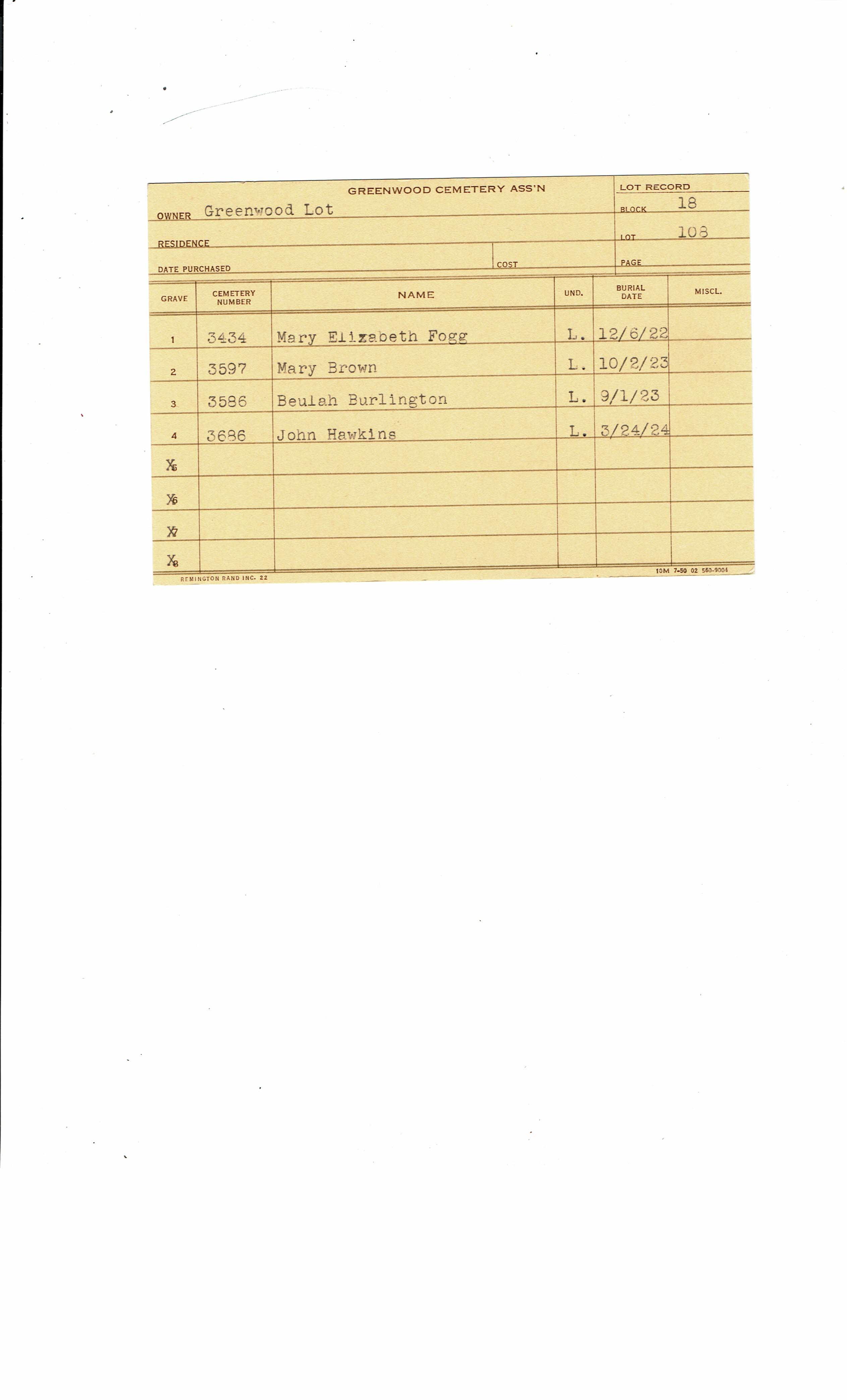 Greenwood Cemetery Association Online Records