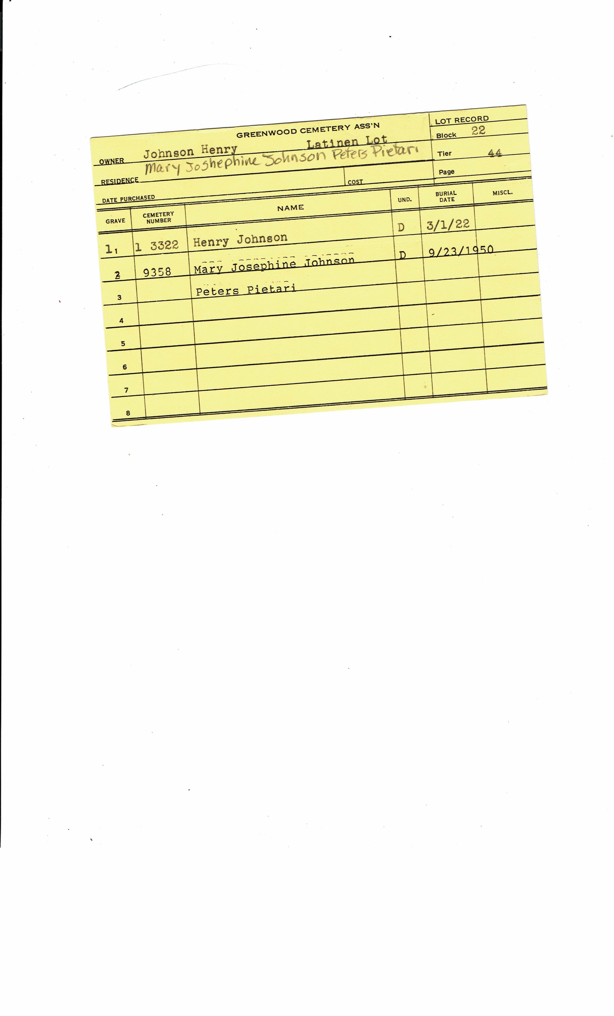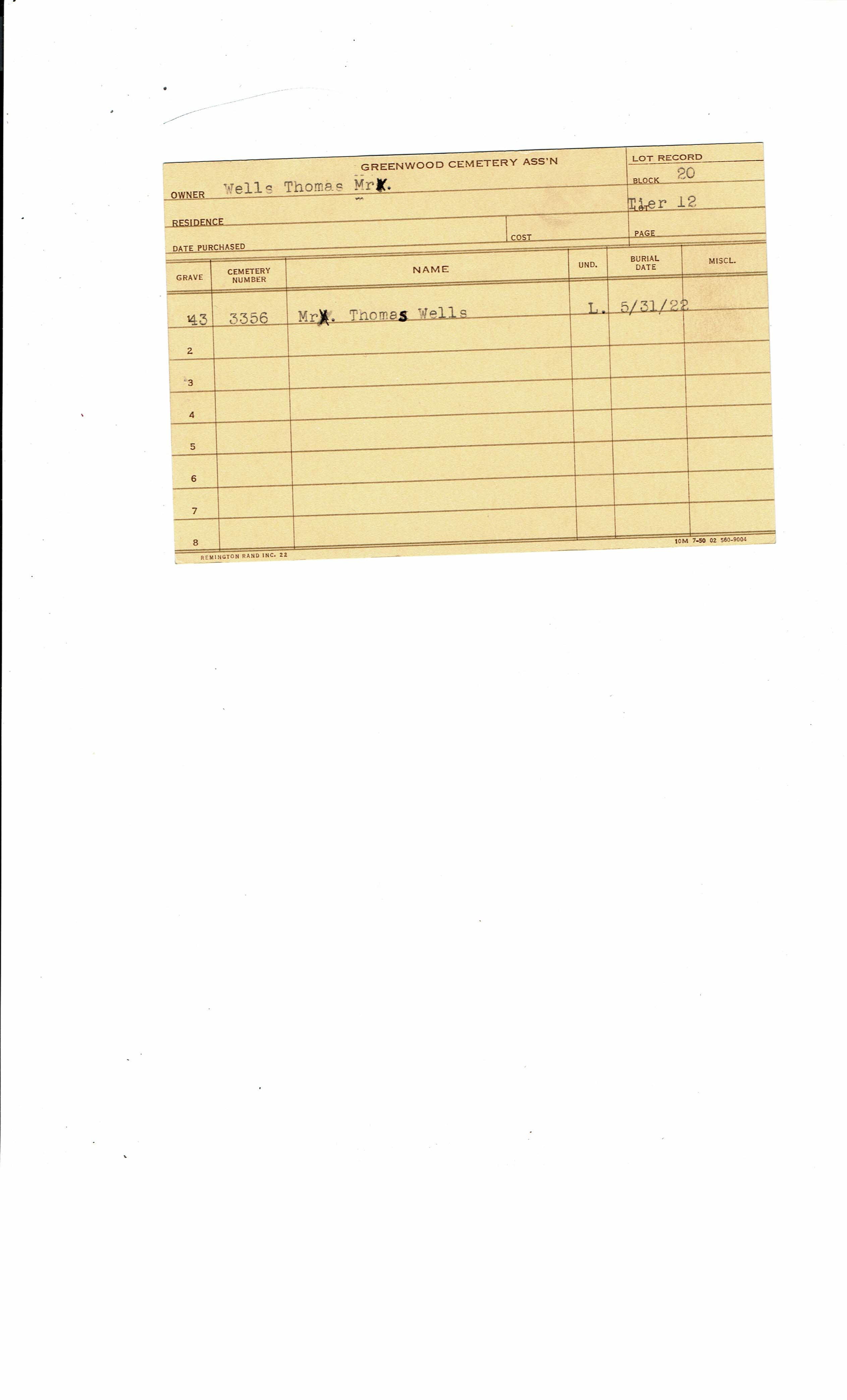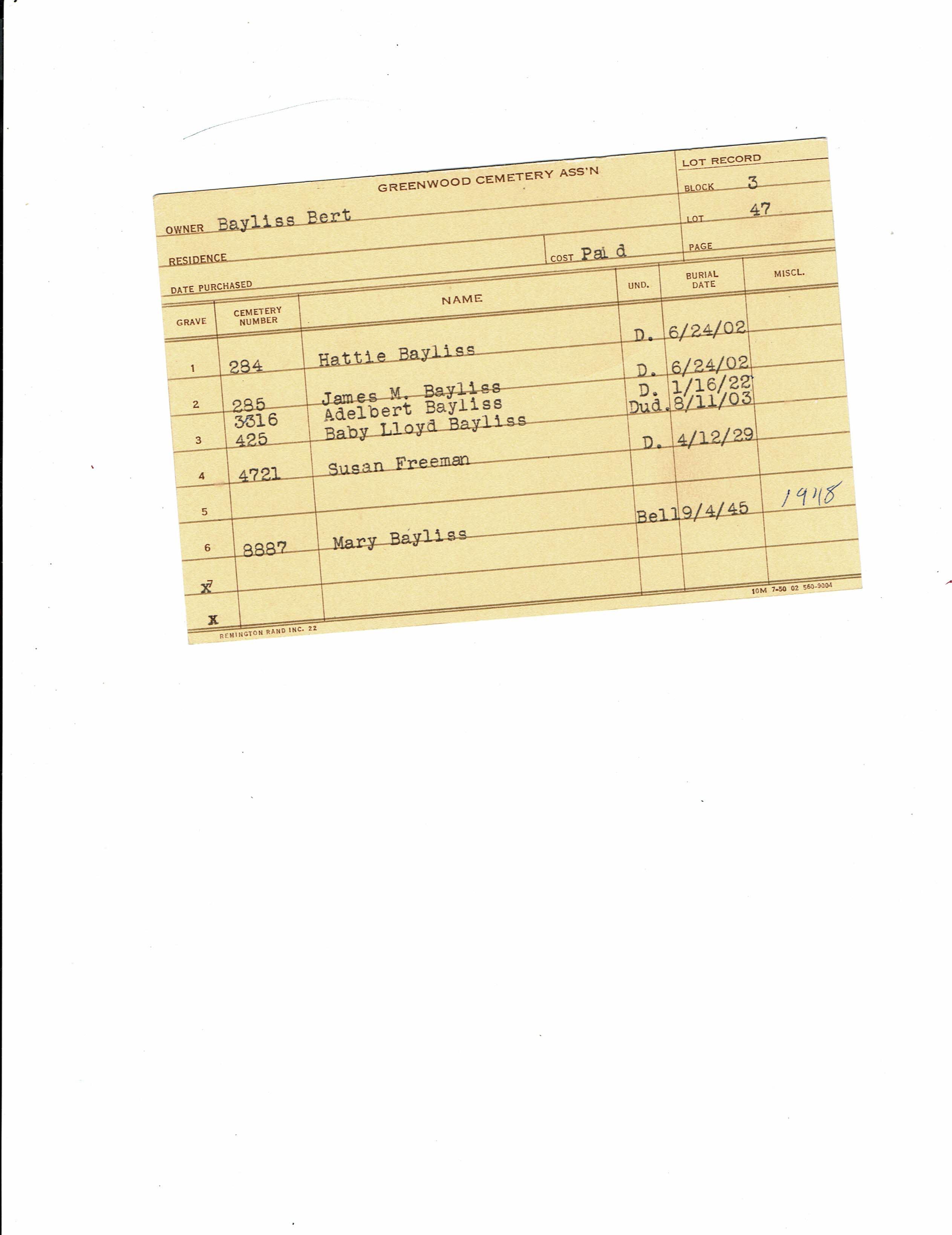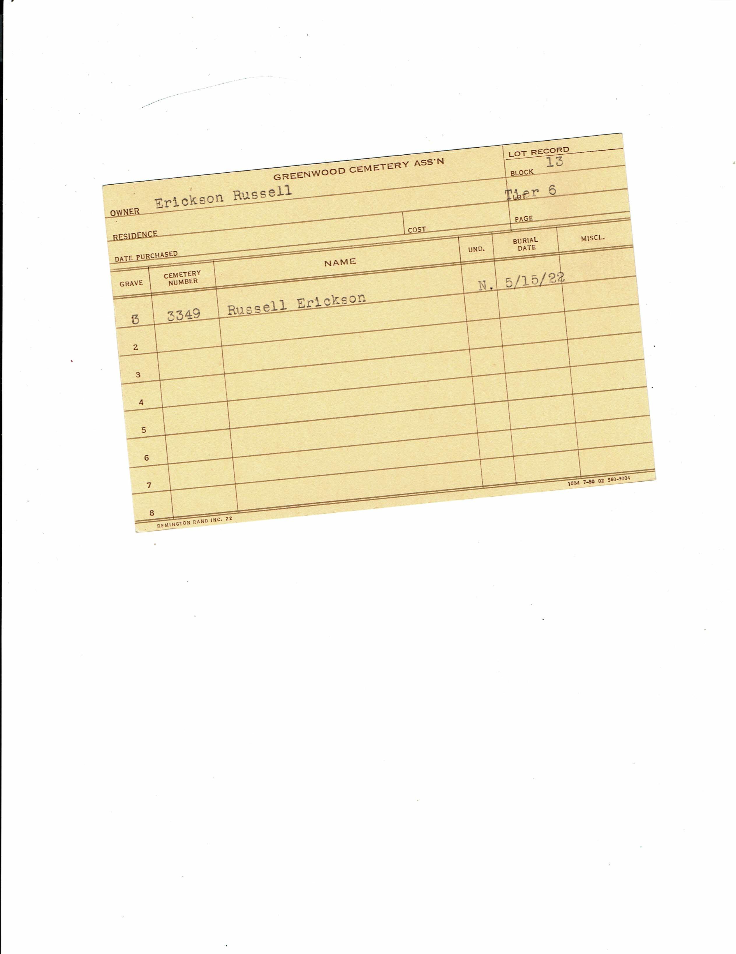Block 13, Tier 11, Lot 1, Grave 47