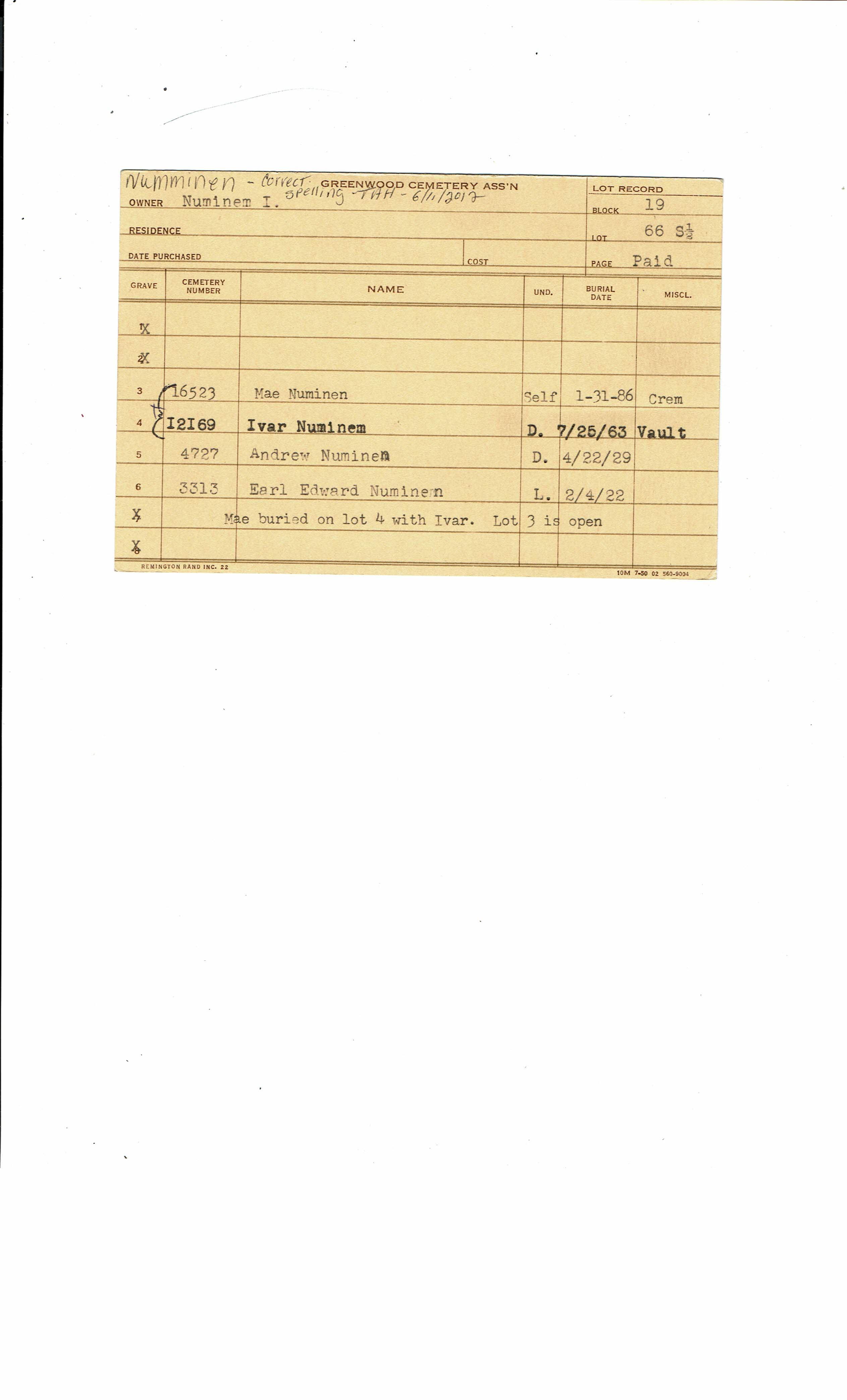 Greenwood Cemetery Association Online Records