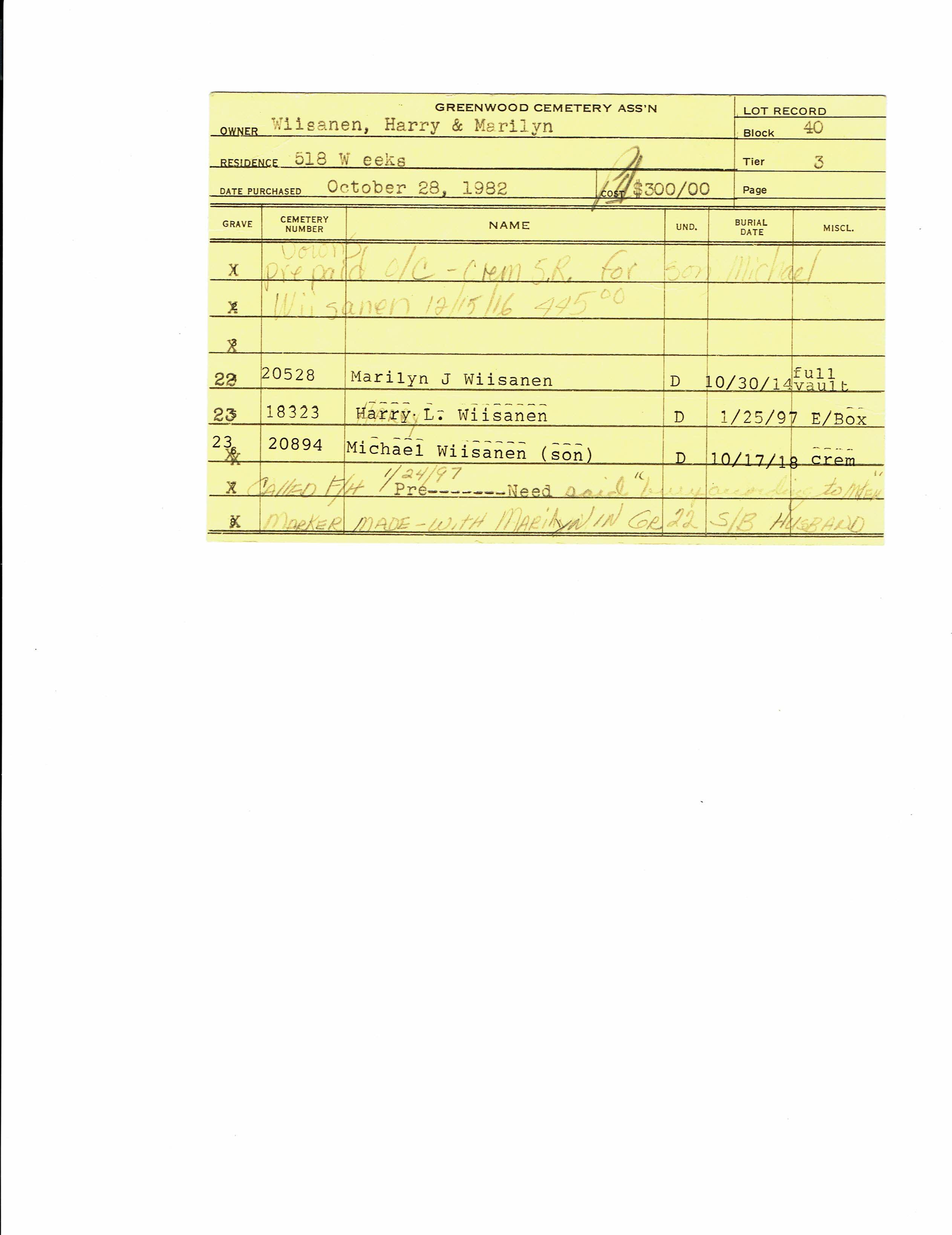 Greenwood Cemetery Association Online Records
