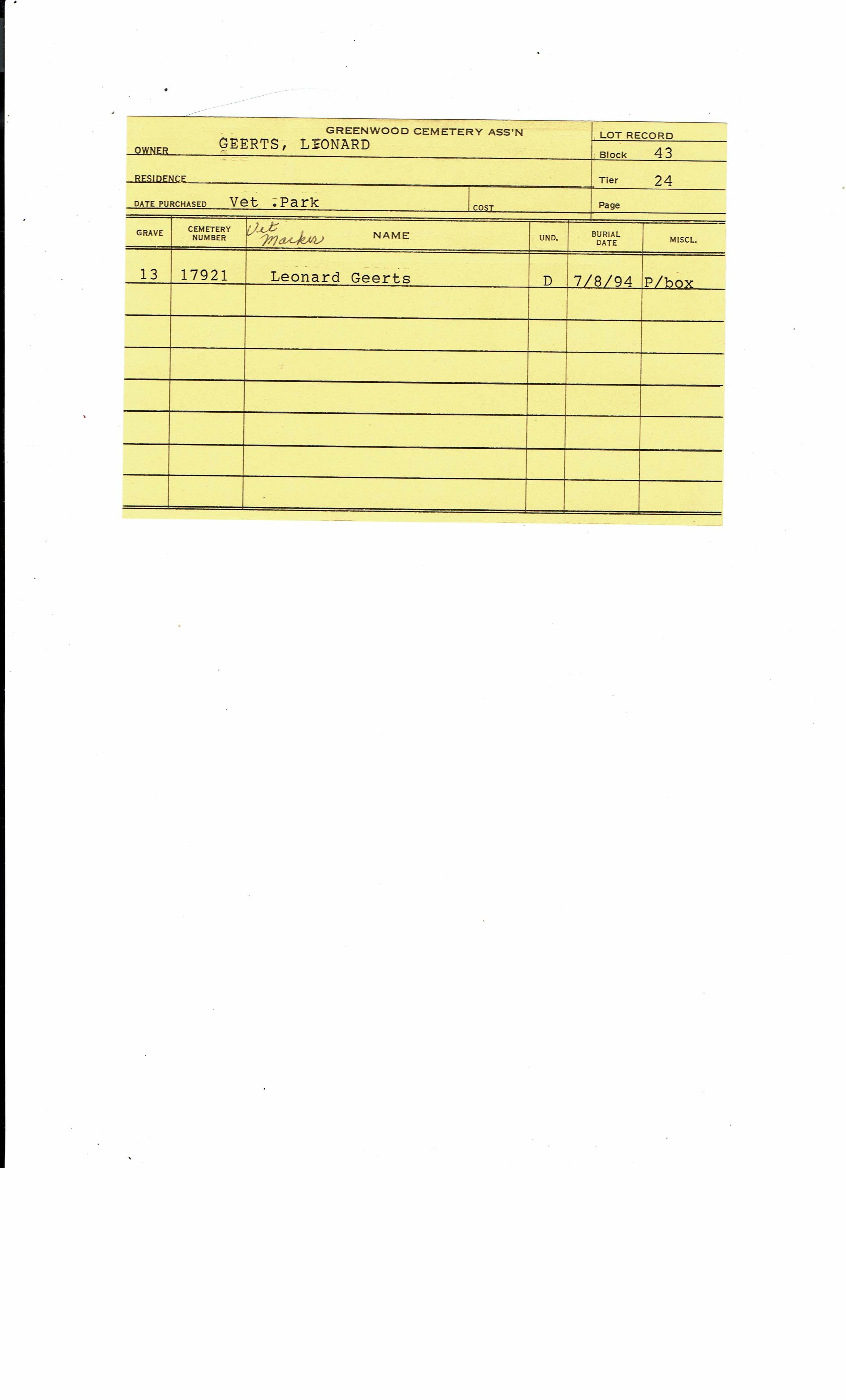 Block 43, Tier 22, Lot 1, Grave 44