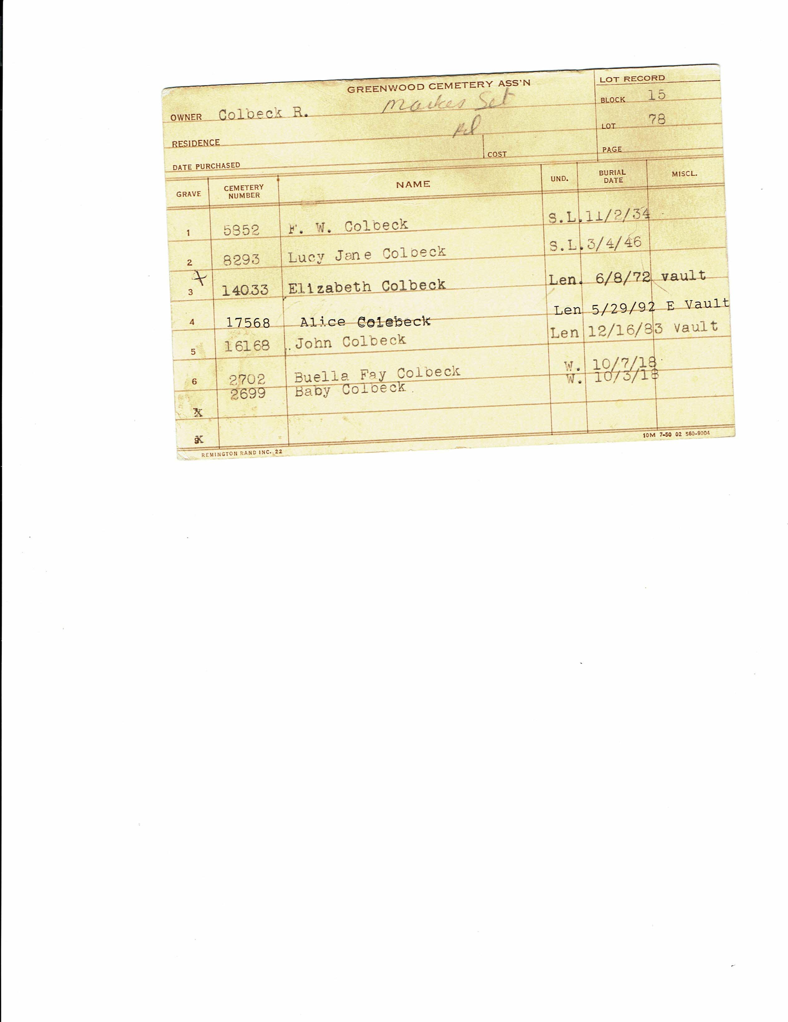 Greenwood Cemetery Association Online Records