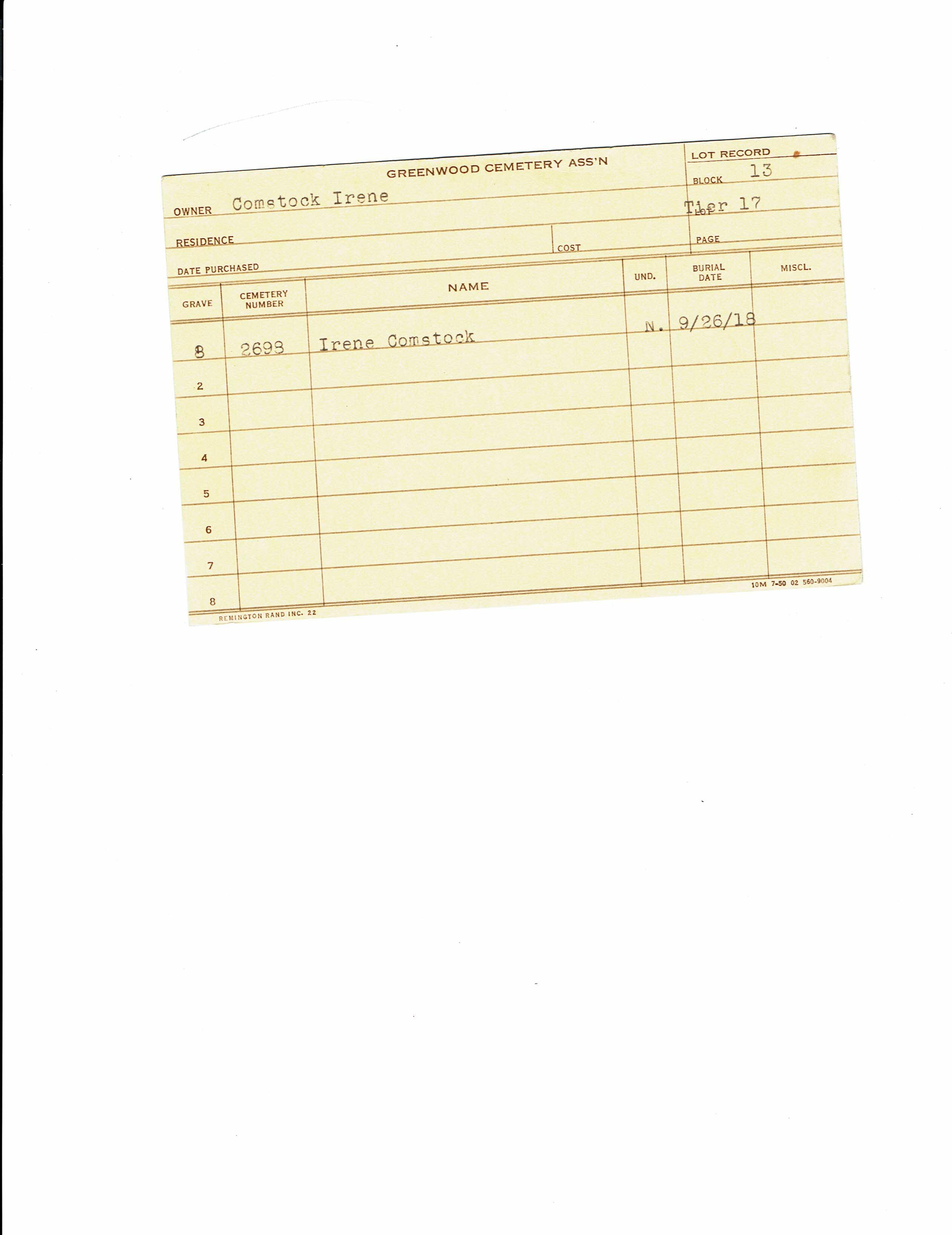 Block 13, Tier 16, Lot 1, Grave 50