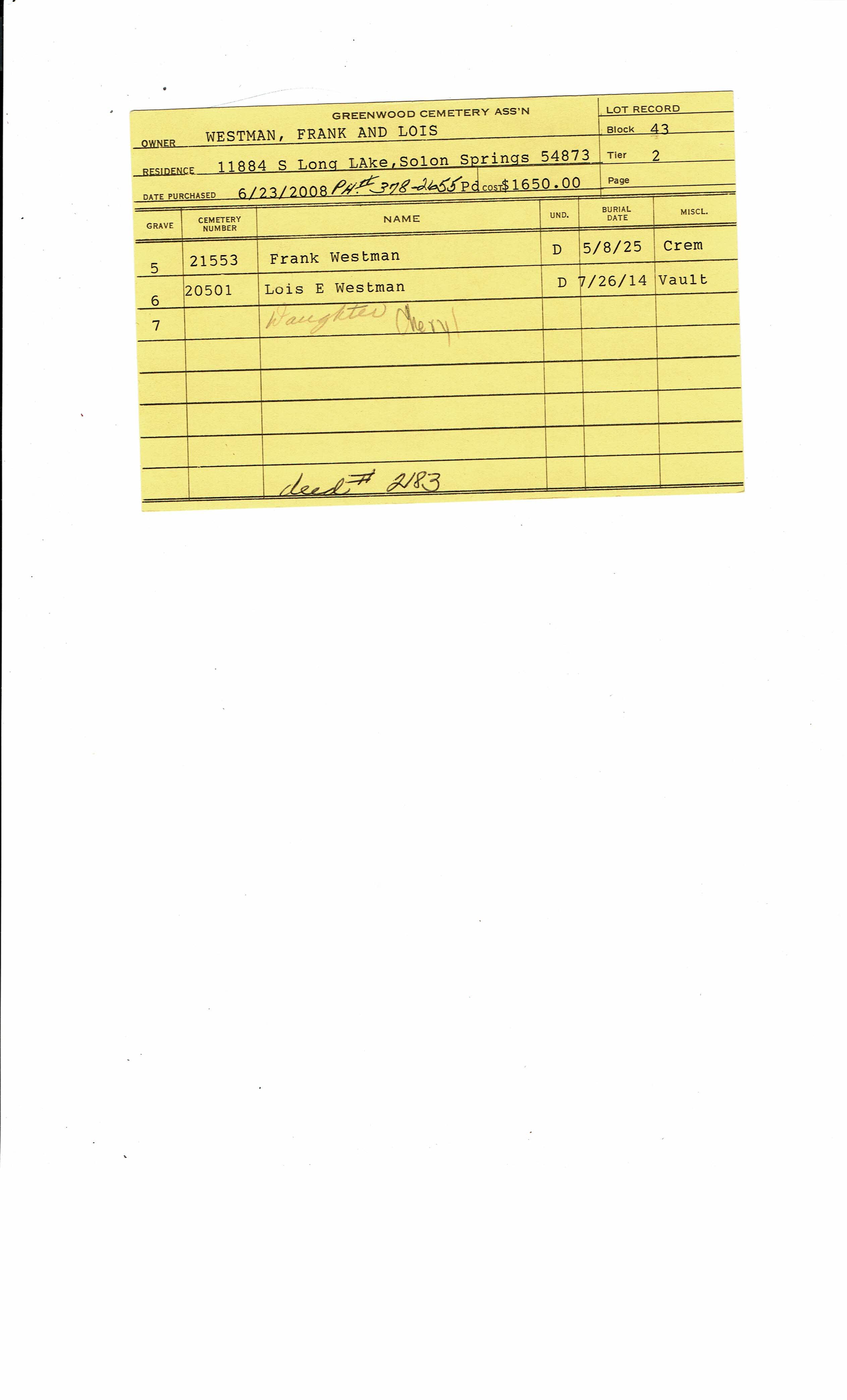 Block 43, Tier 4, Lot 1, Grave 13