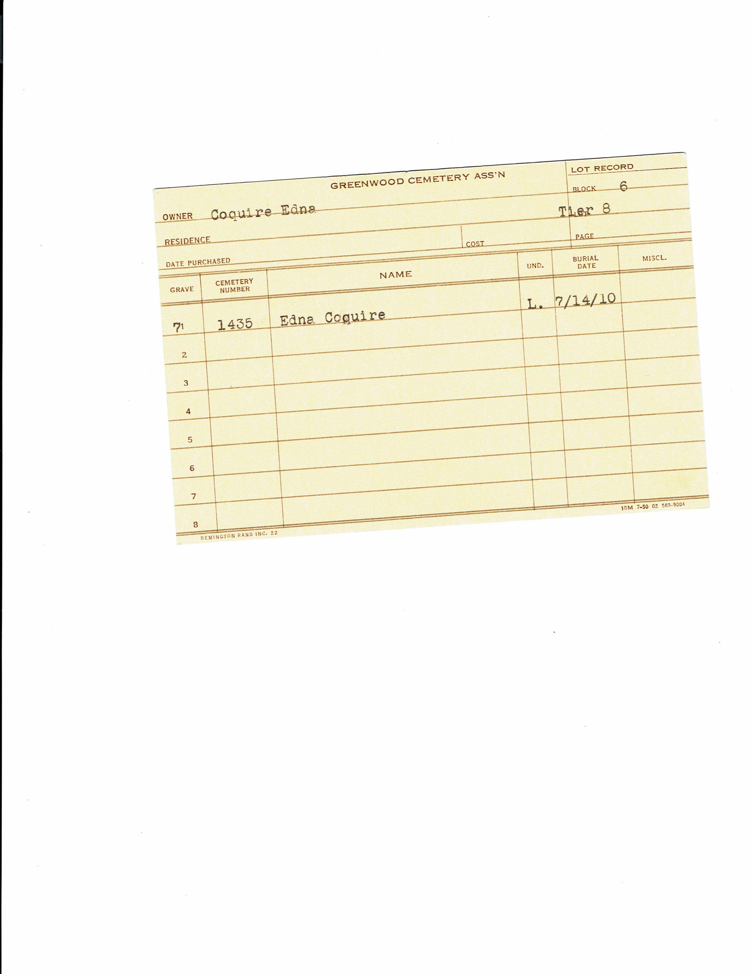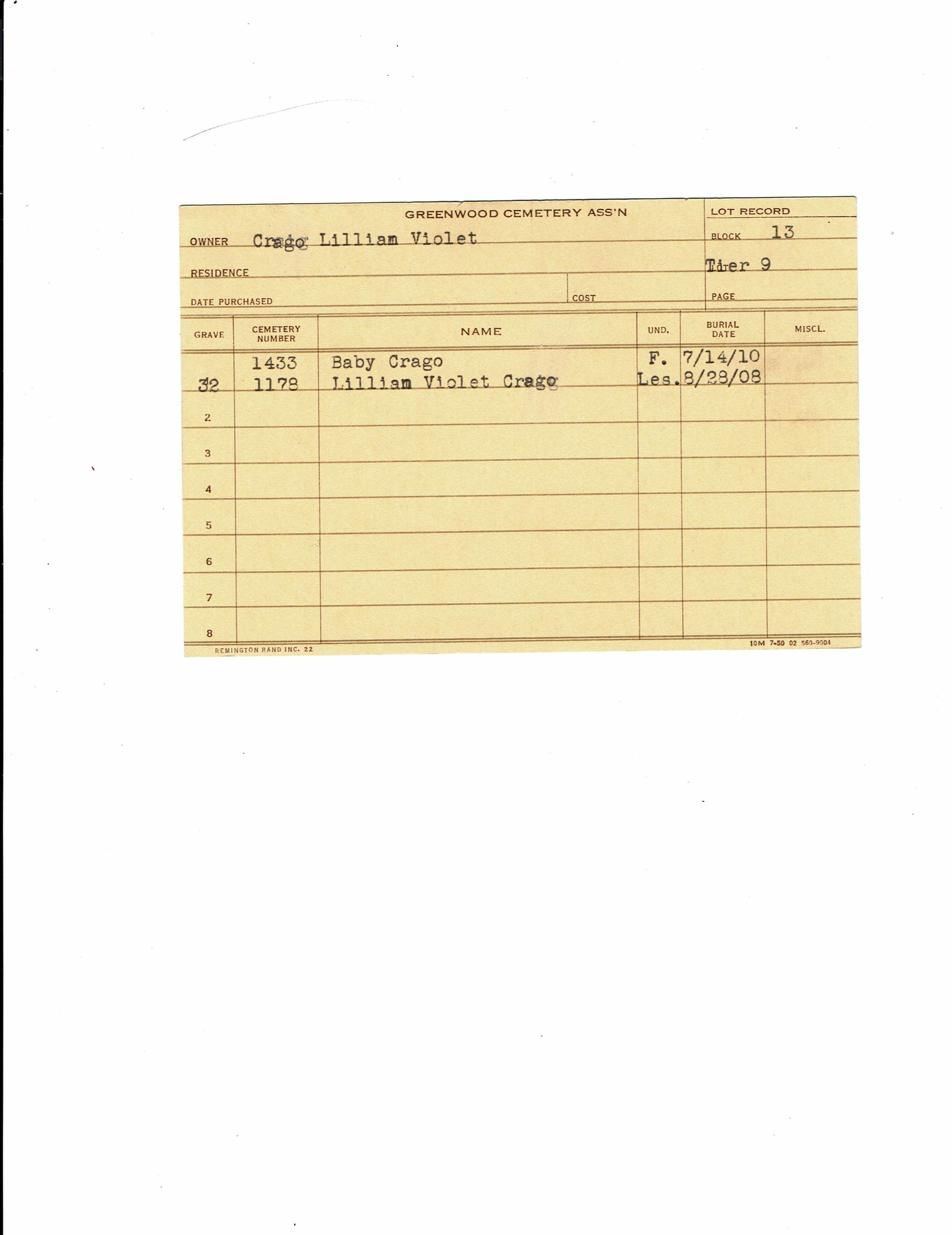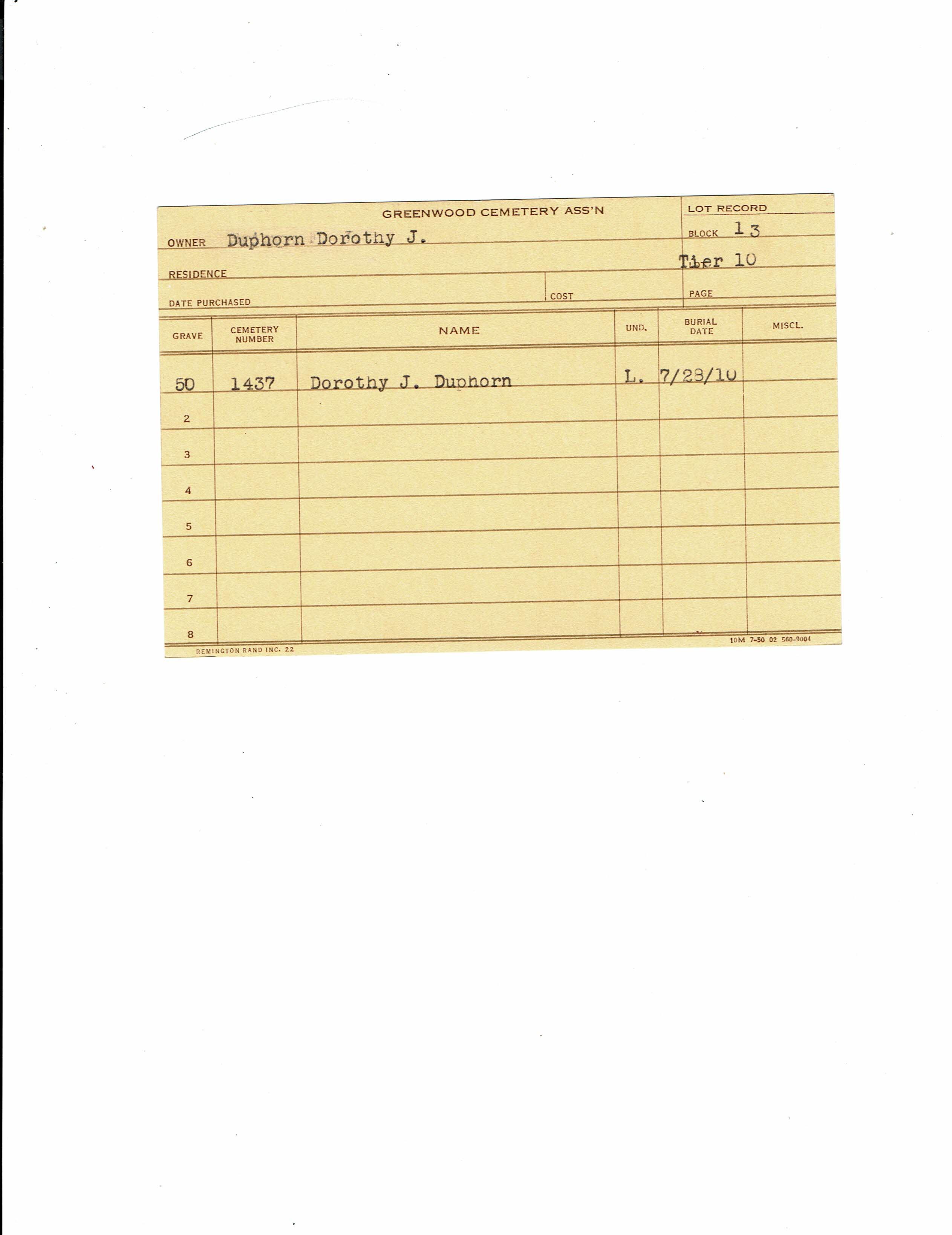 Block 13, Tier 10, Grave 50