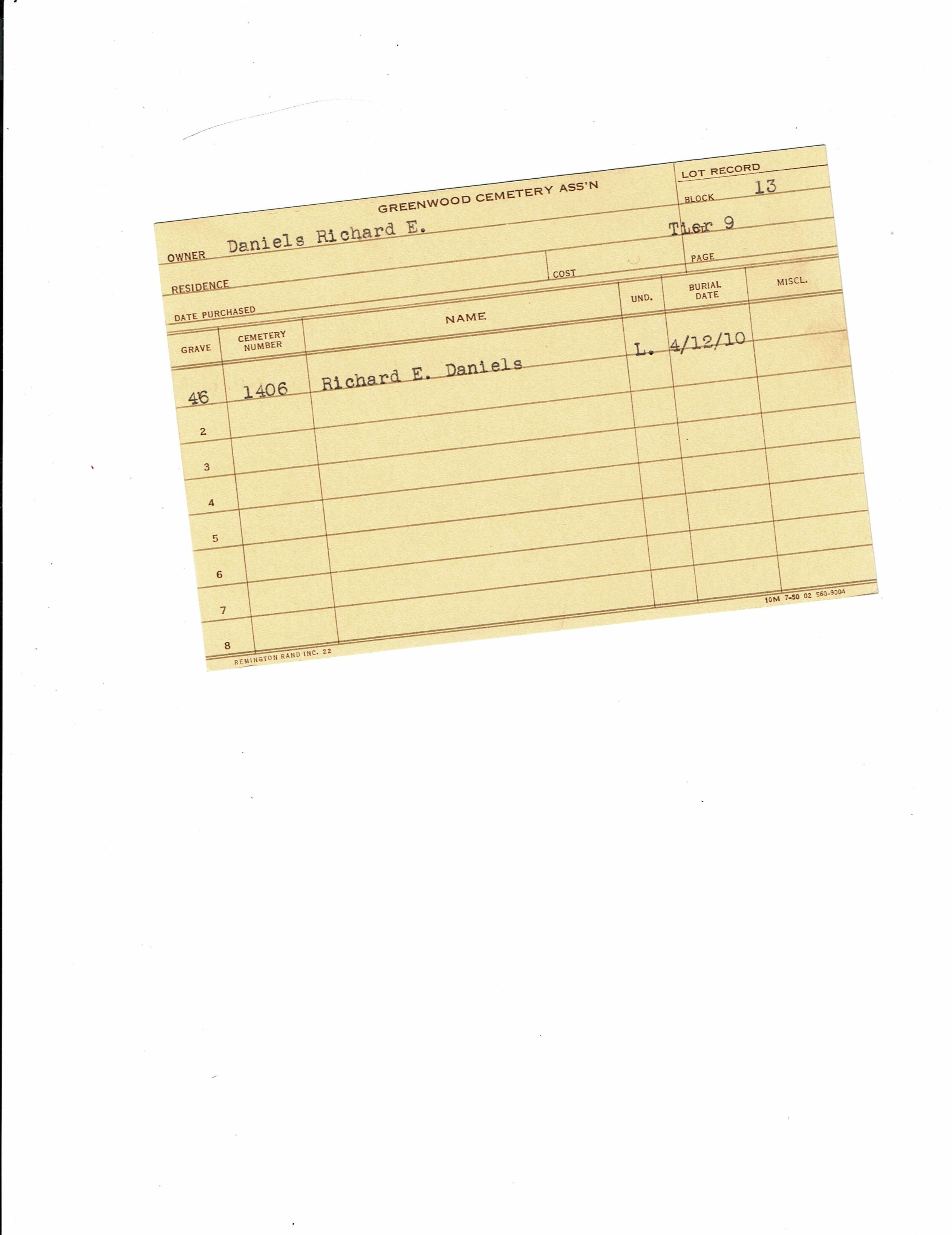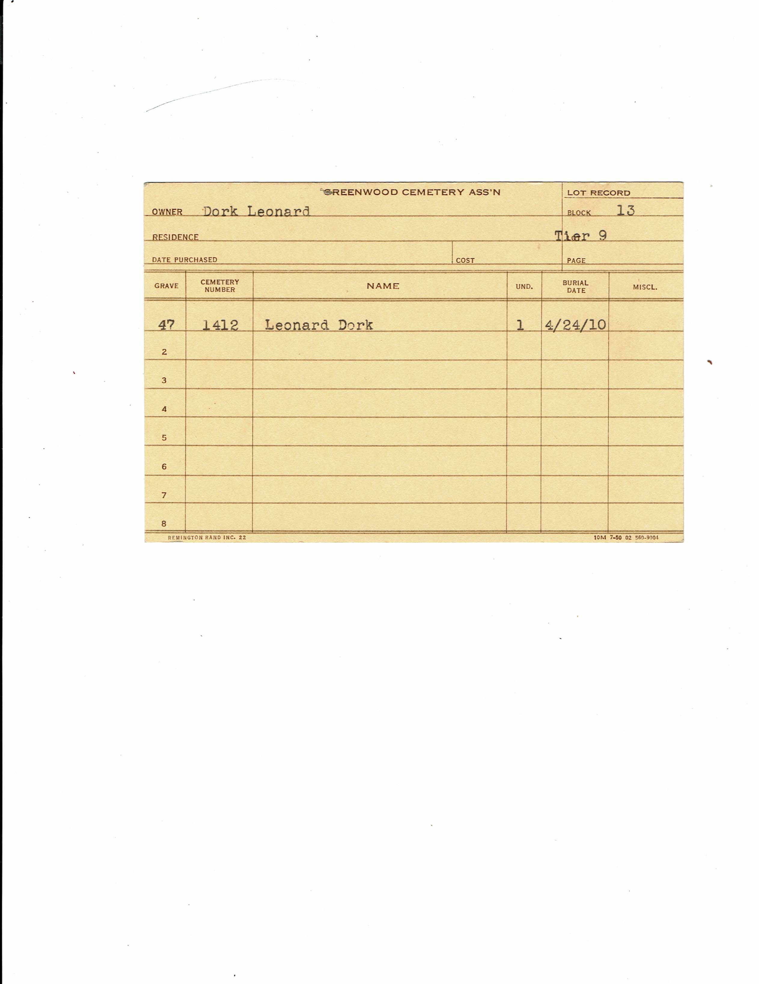Block 13, Tier 10, Lot 1, Grave 47