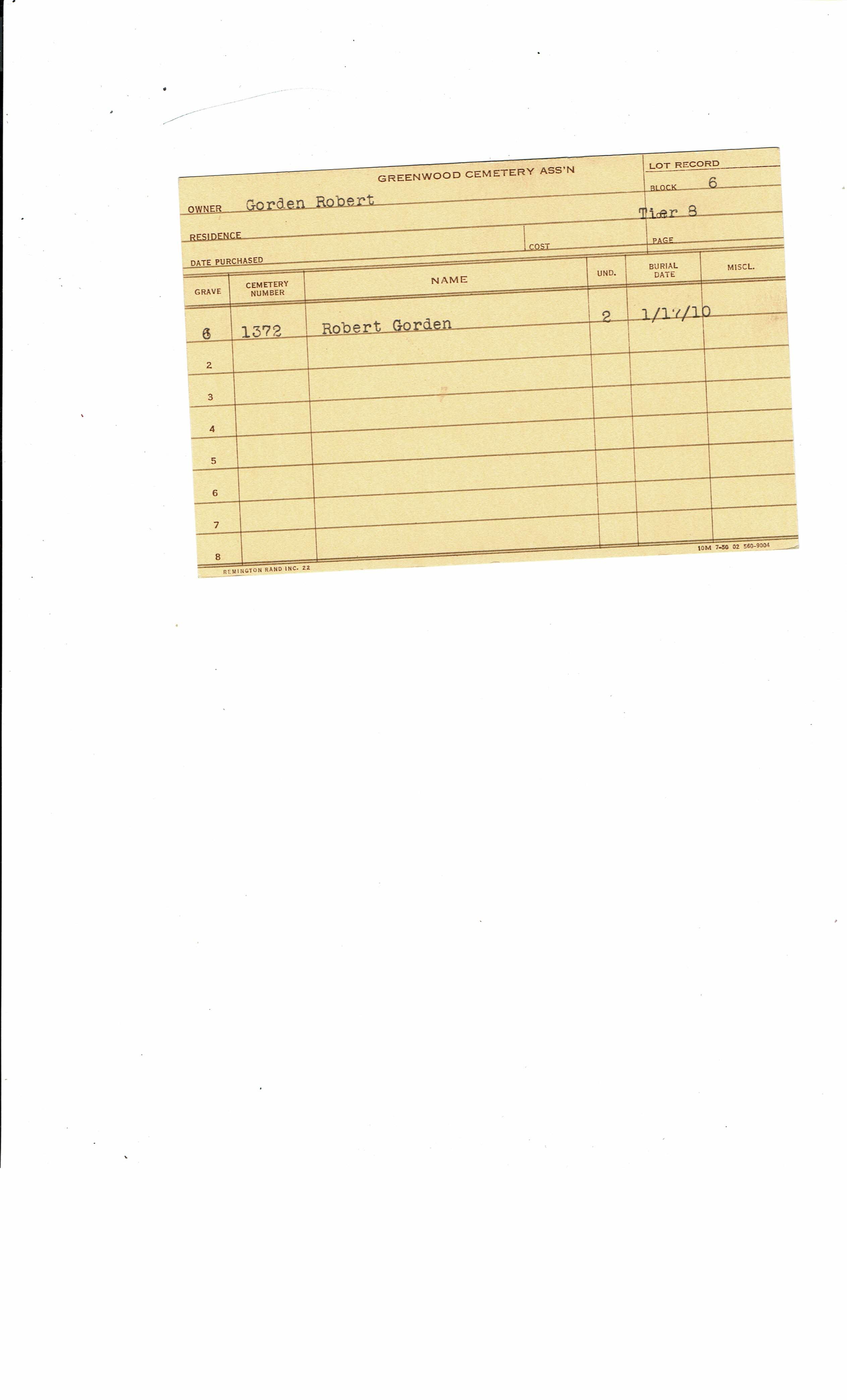 Block 12, Tier 1, Lot 06, Grave 6