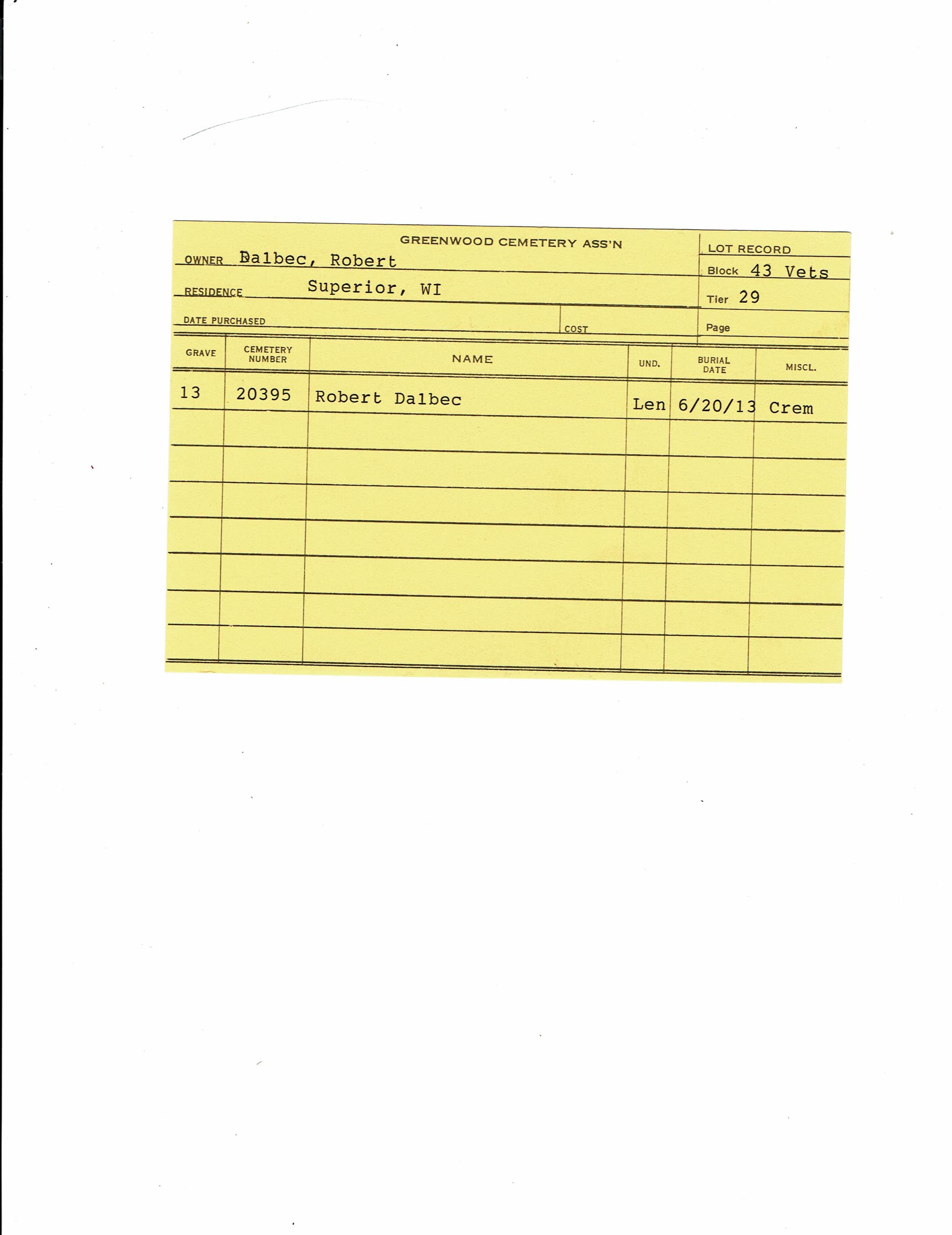 Block 43 V, Tier 1, Lot 29, Grave 13