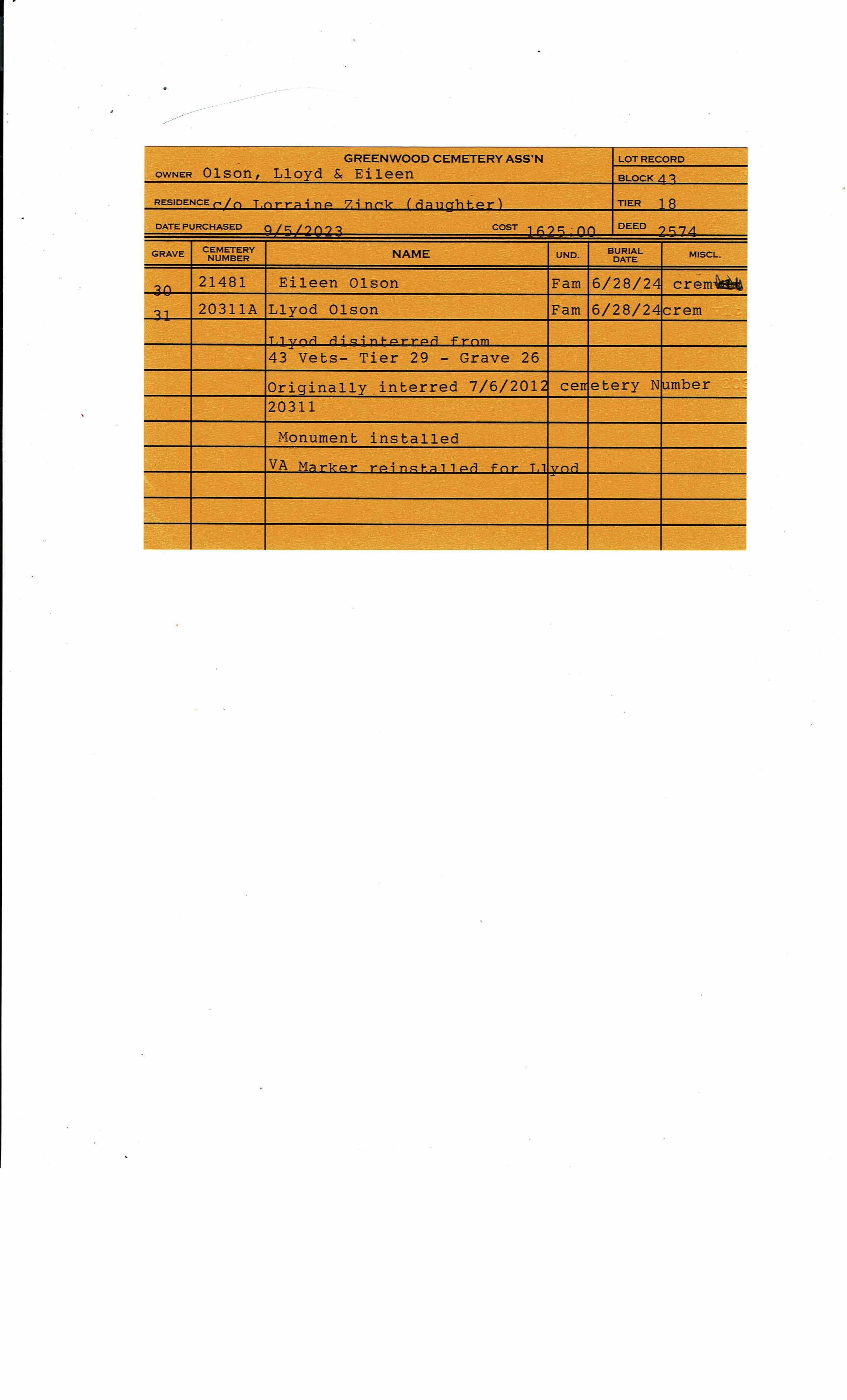 Block 43 V, Tier 29, Lot 1, Grave 03