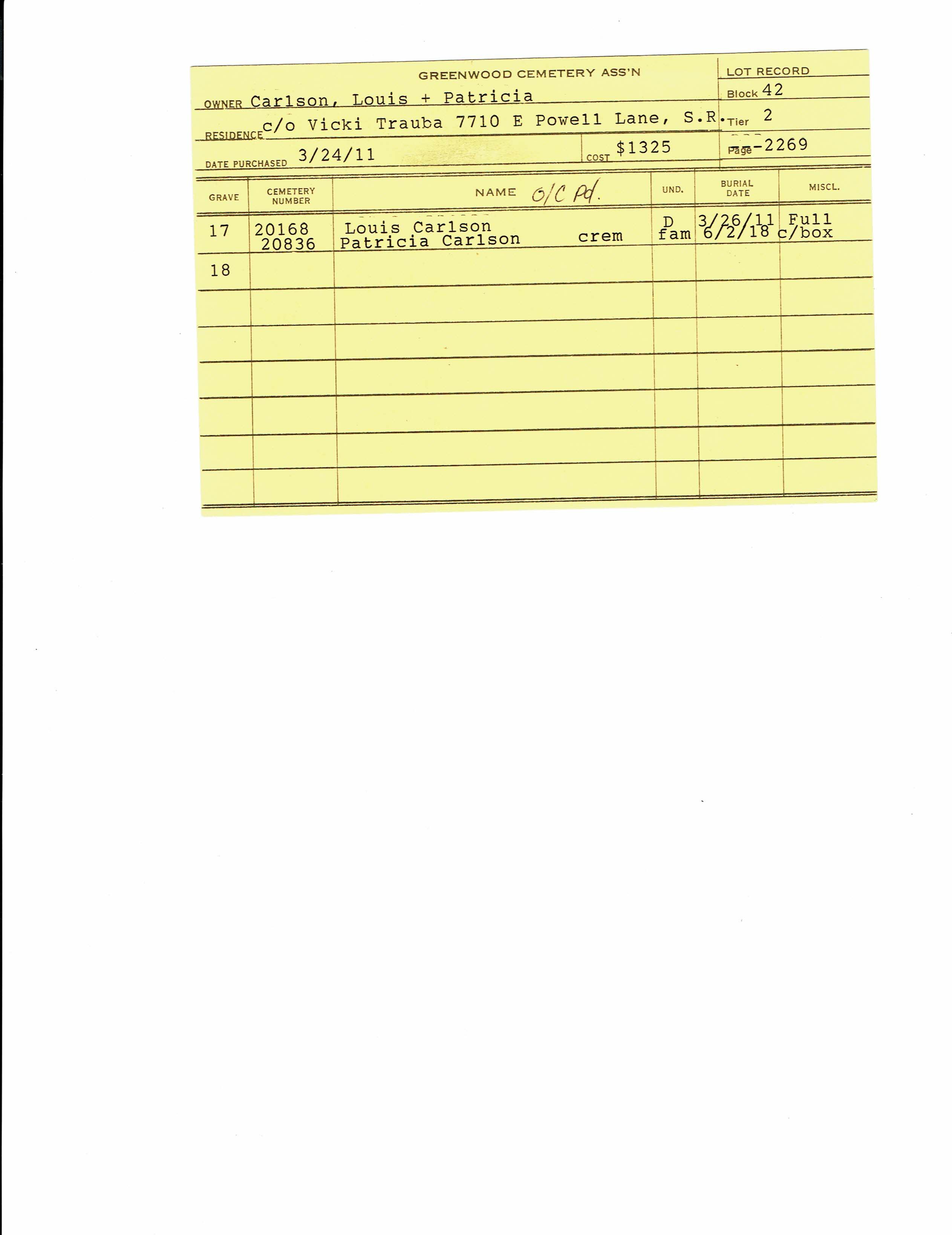 Block 43 V, Tier 28, Lot 1, Grave 14