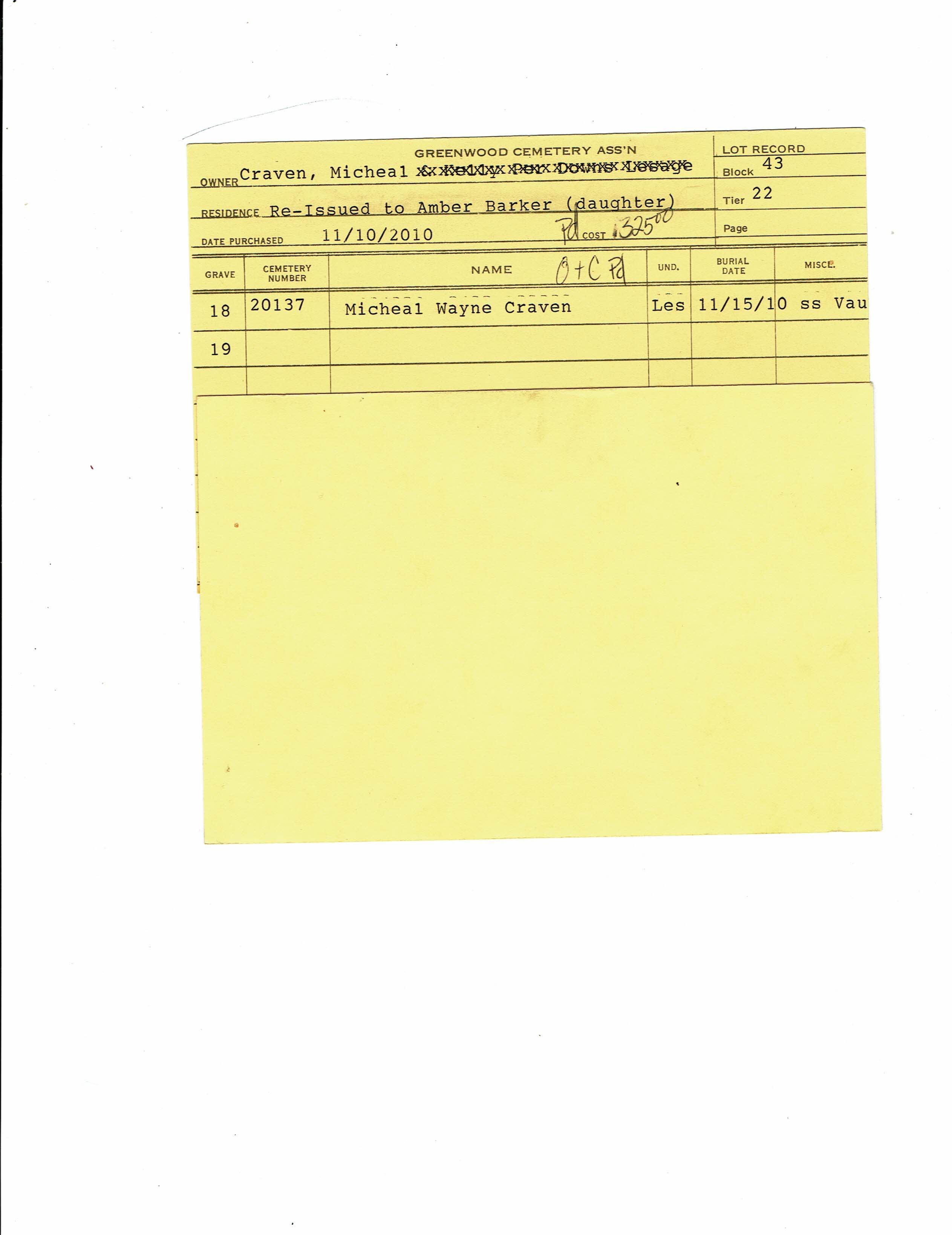 Block 43, Tier 22, Grave 18