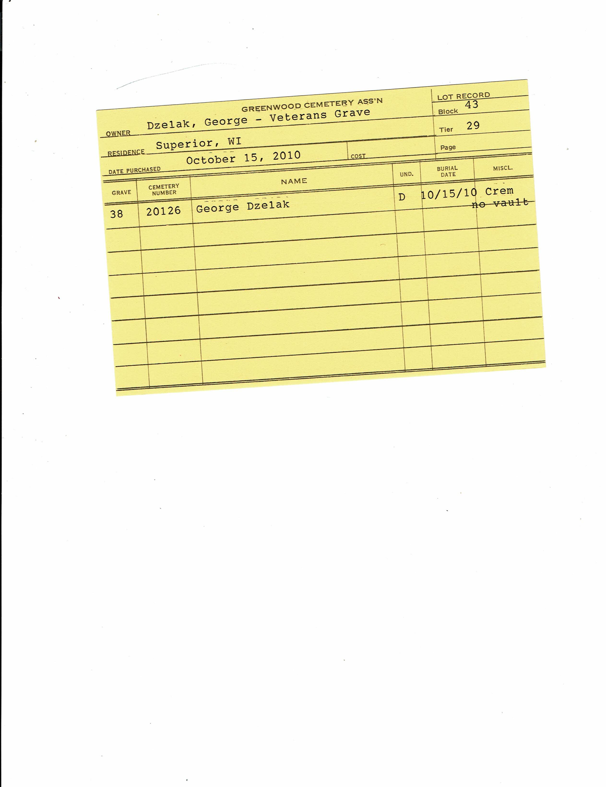 Block 43, Tier 29, Grave 45