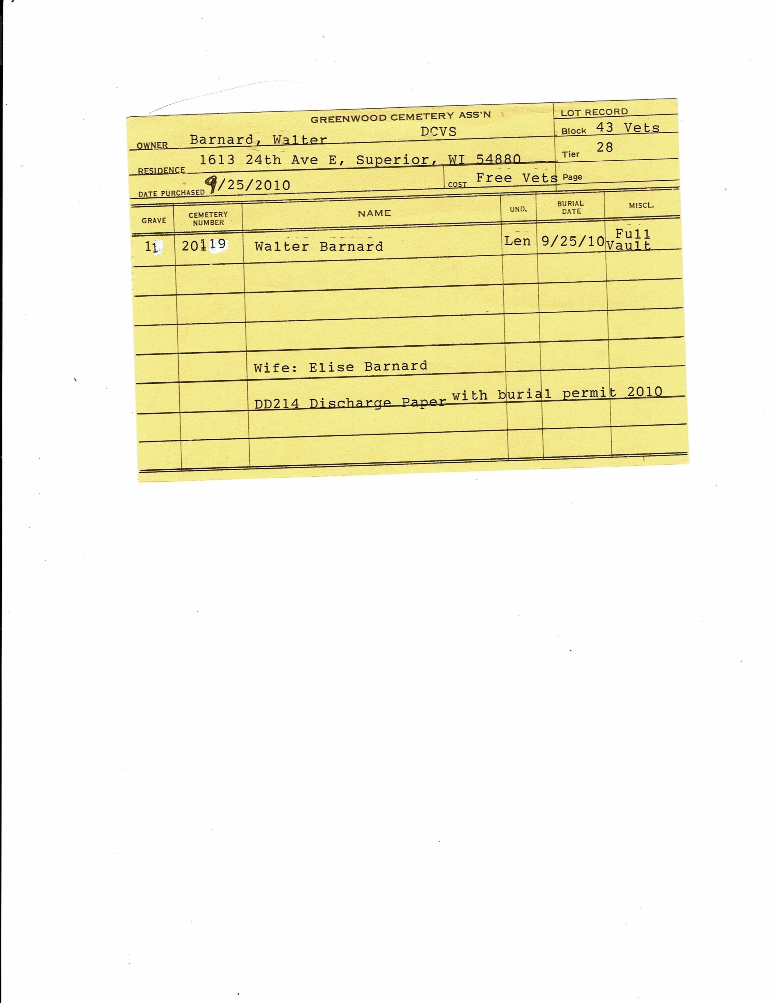 Block 43 V, Tier 1, Lot 28, Grave 11