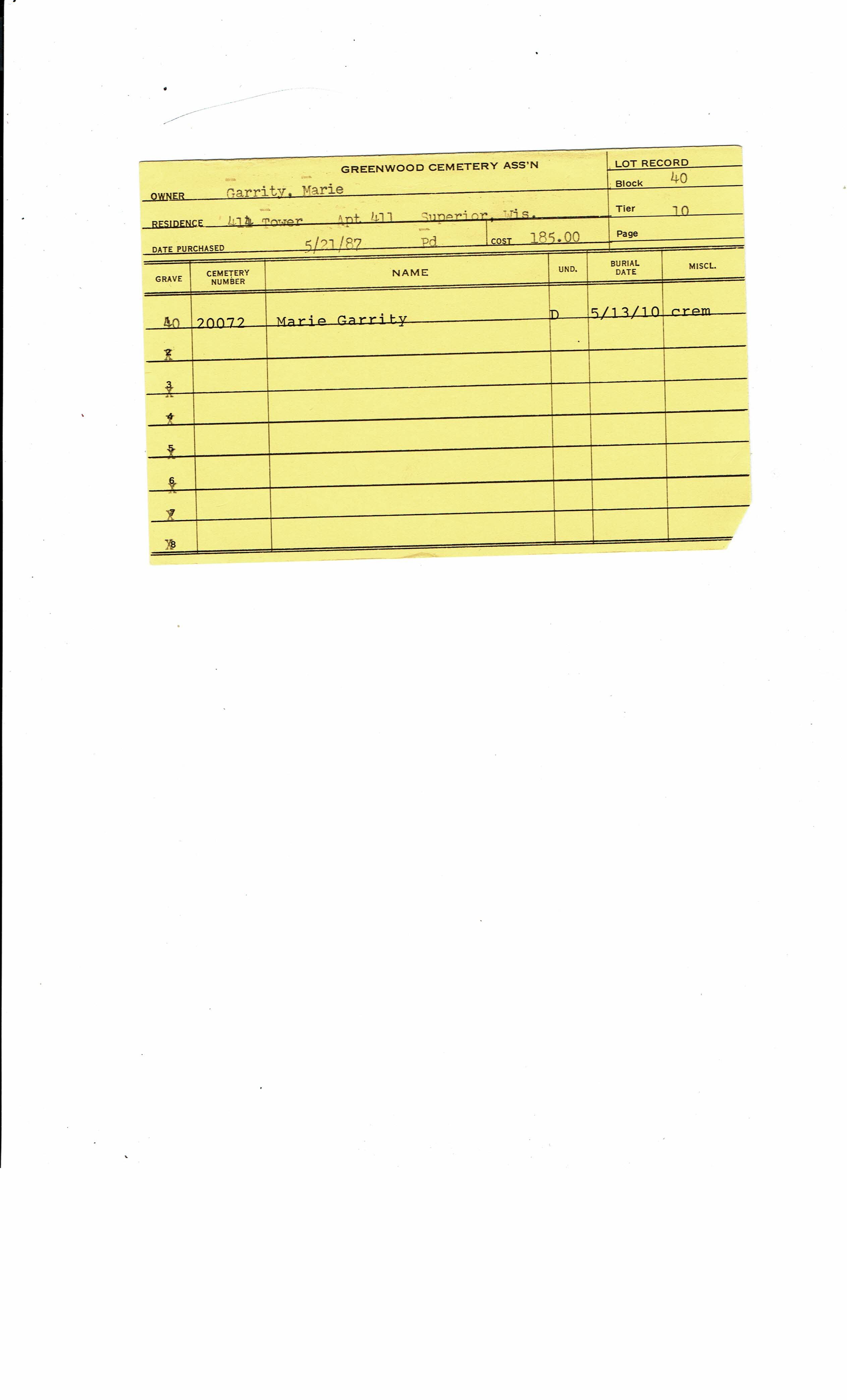 Greenwood Cemetery Association Online Records