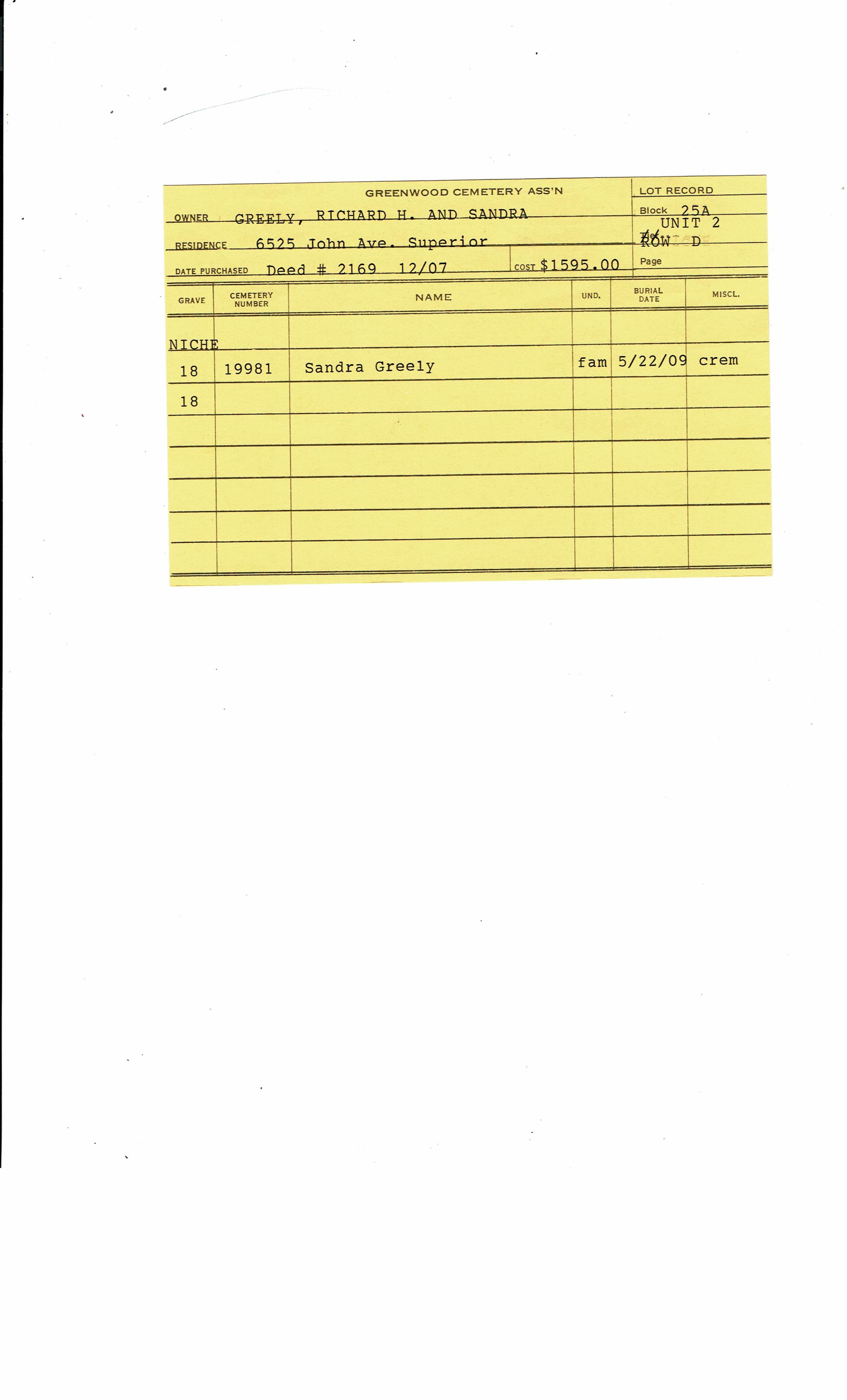 Block 25A, Tier Row D, Lot Unit 2, Grave 18