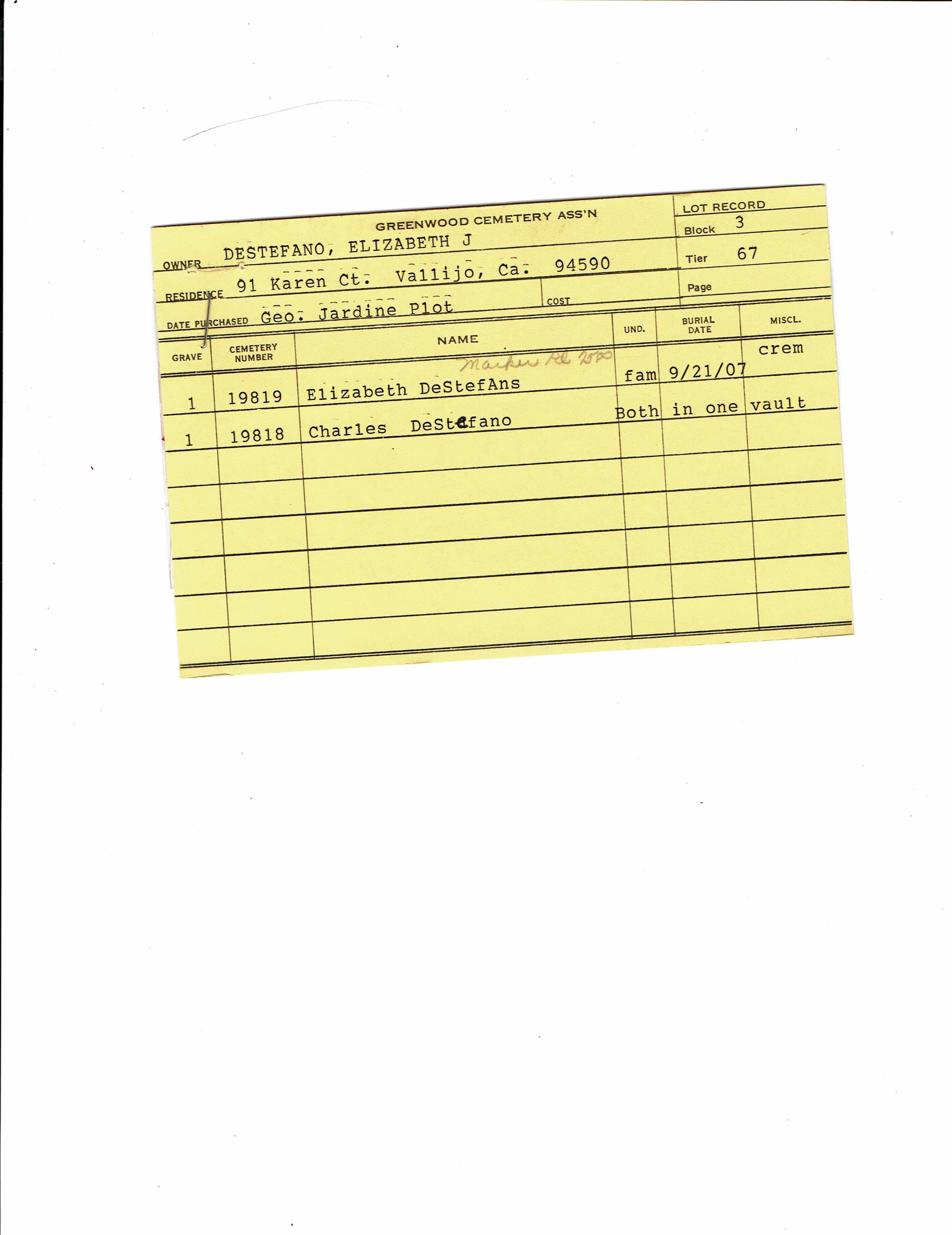 Block 47, Tier 18, Lot 1, Grave 15