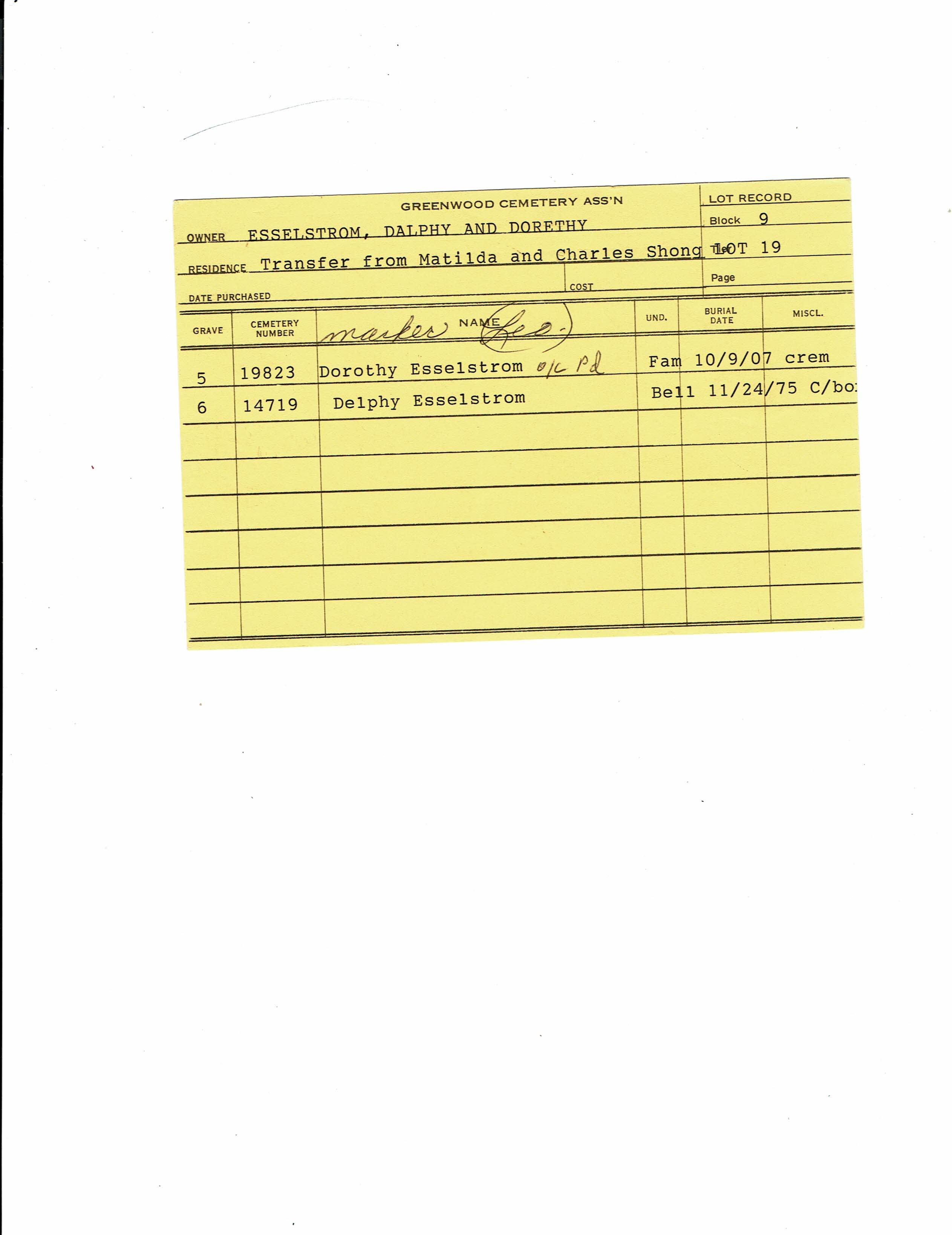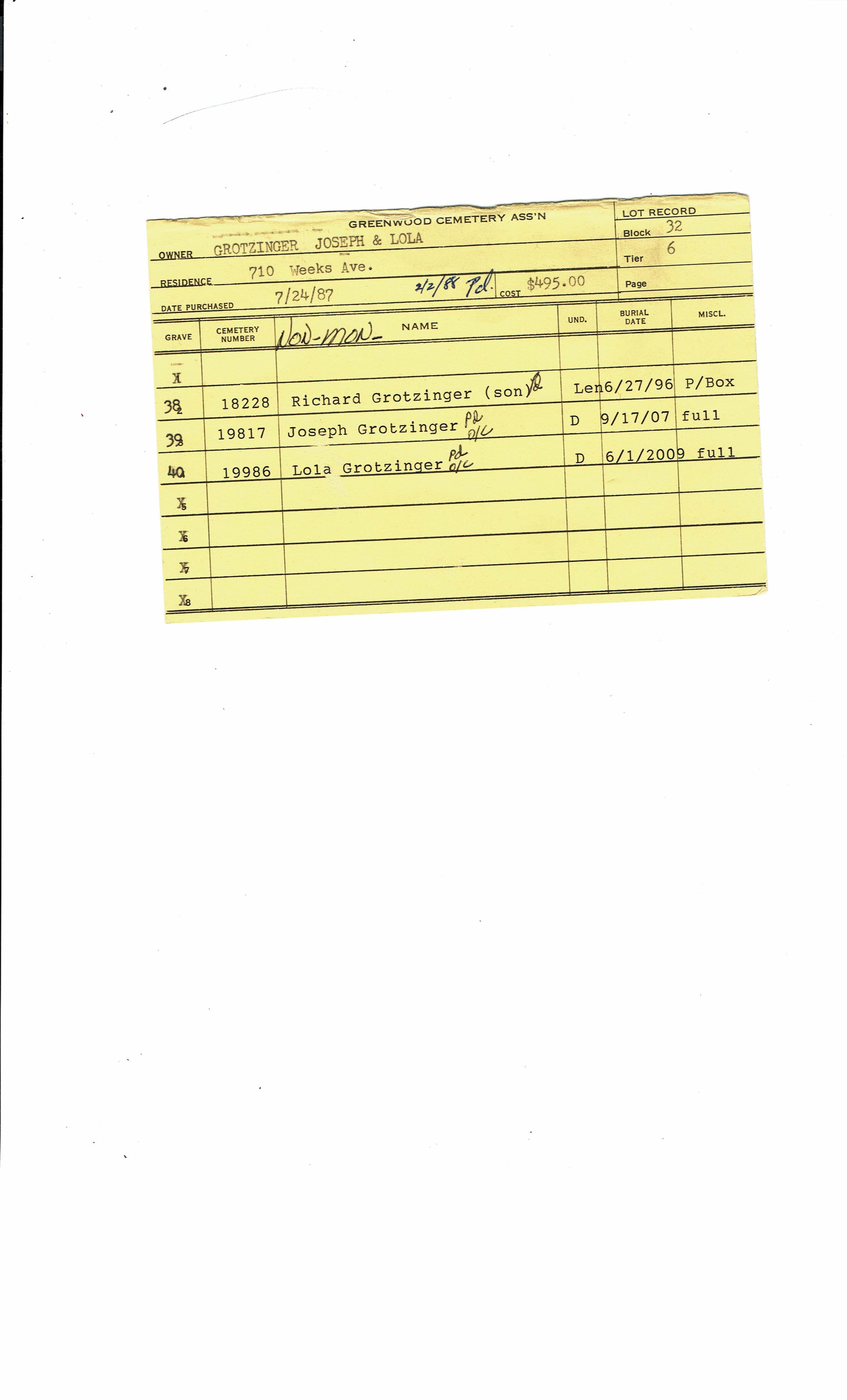 Greenwood Cemetery Association Online Records