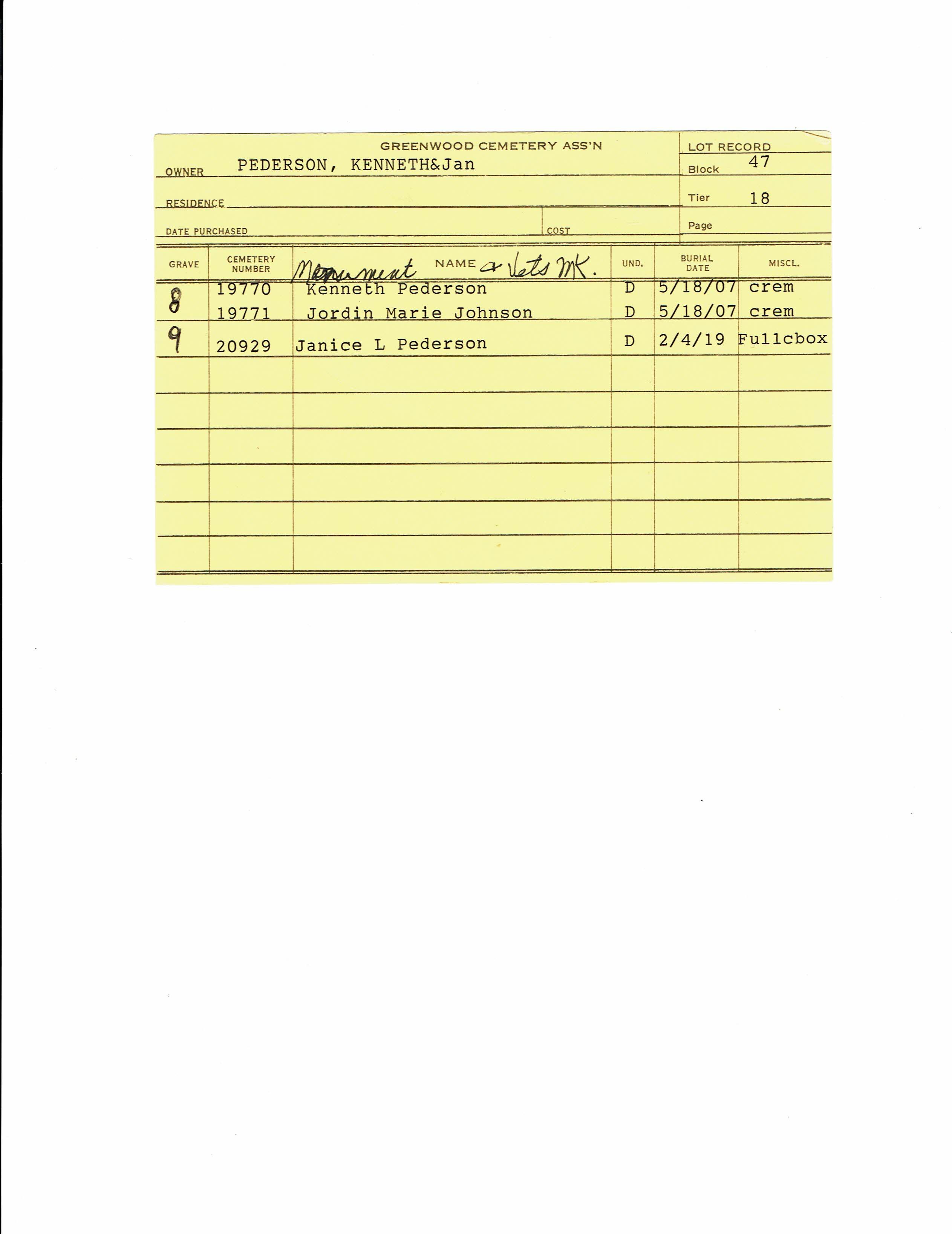 Block 47, Lot 18, Grave 8