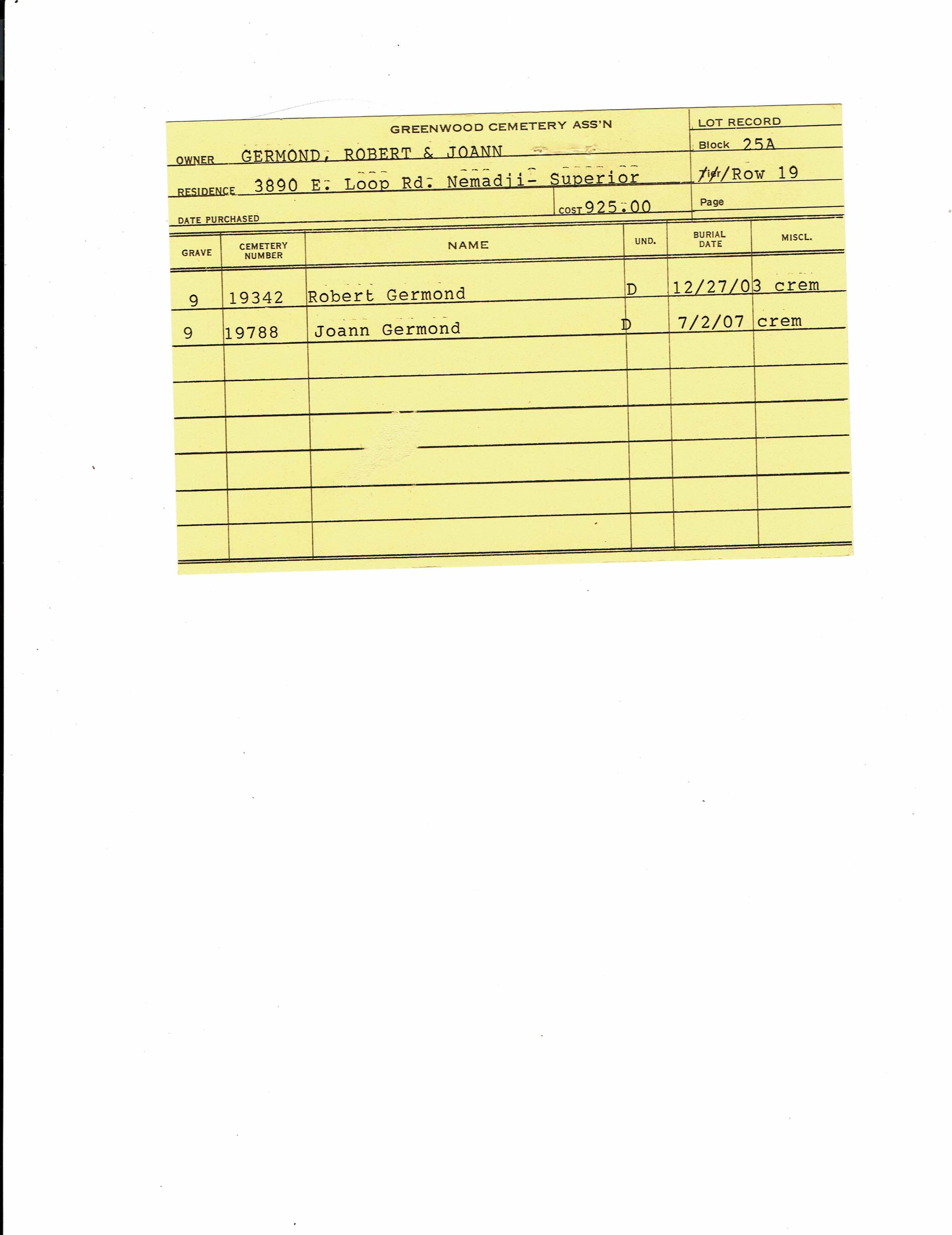 Block 25A, Lot 19, Grave 9