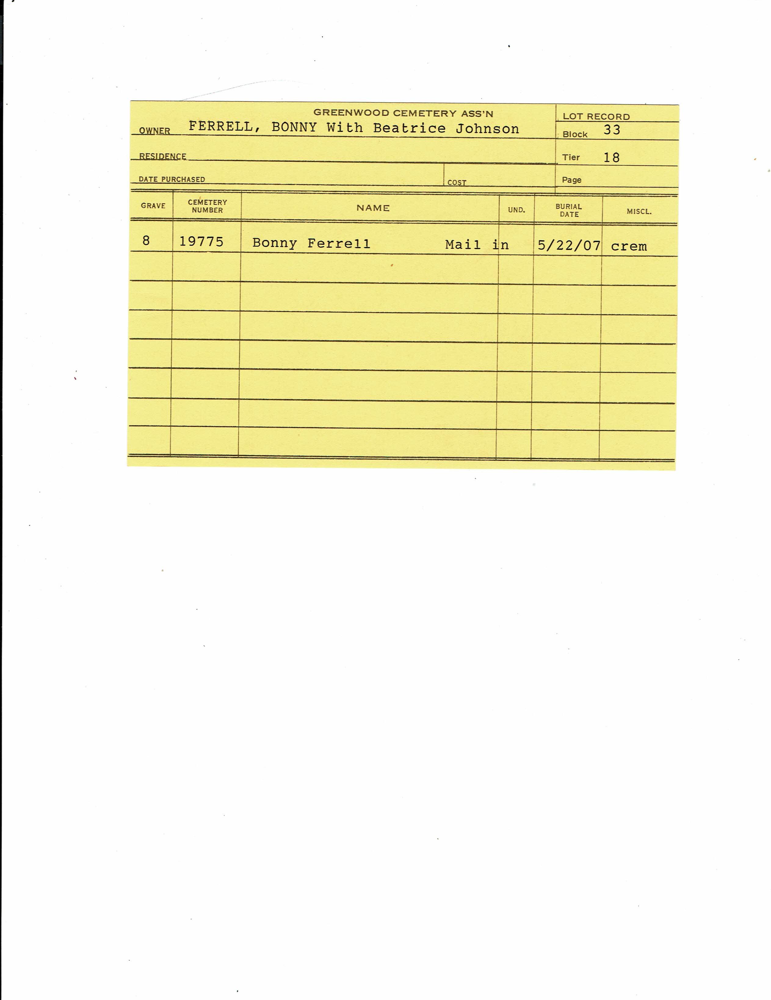 Block 33, Tier 18, Grave 8