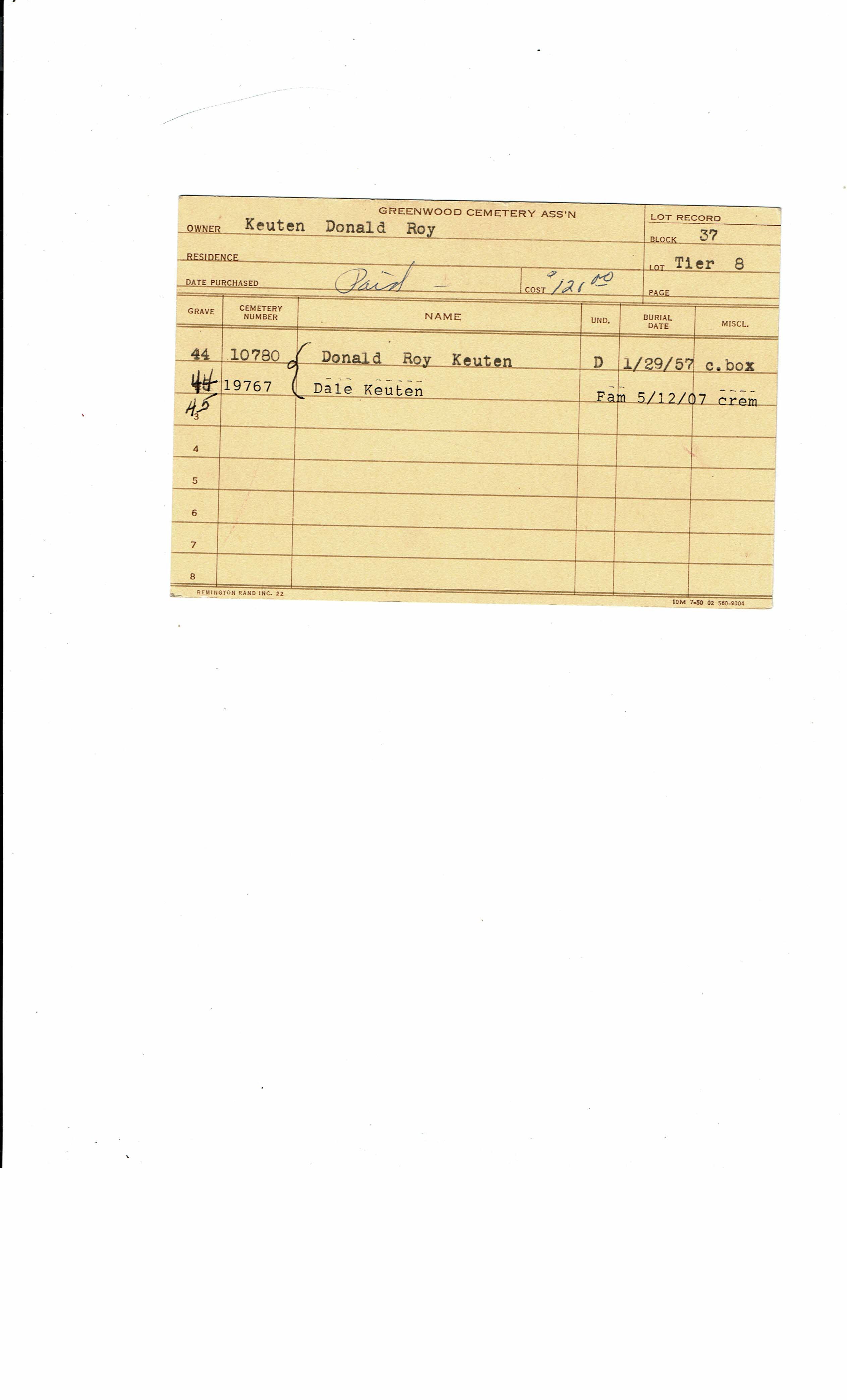 Block 37, Tier 8, Grave 44