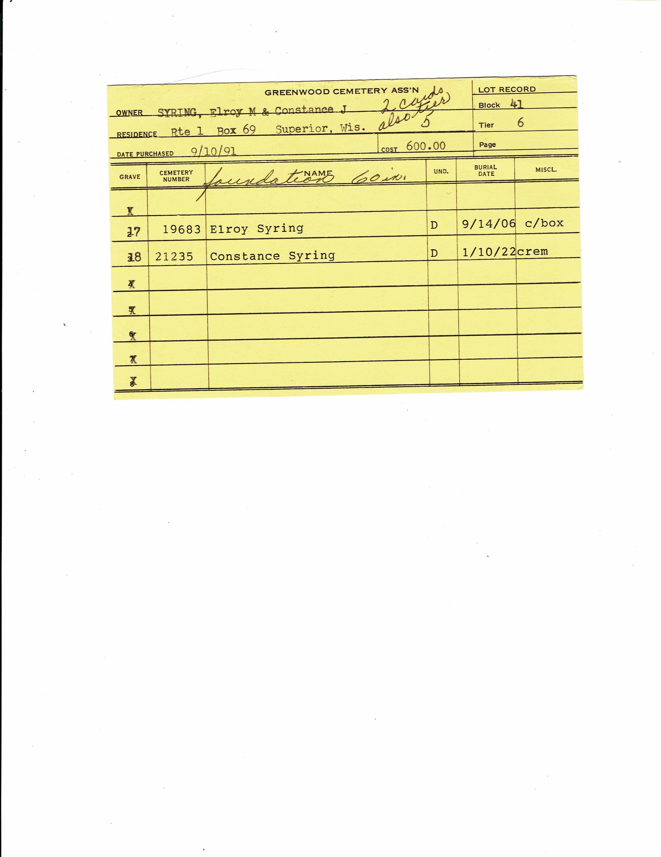 Greenwood Cemetery Association Online Records