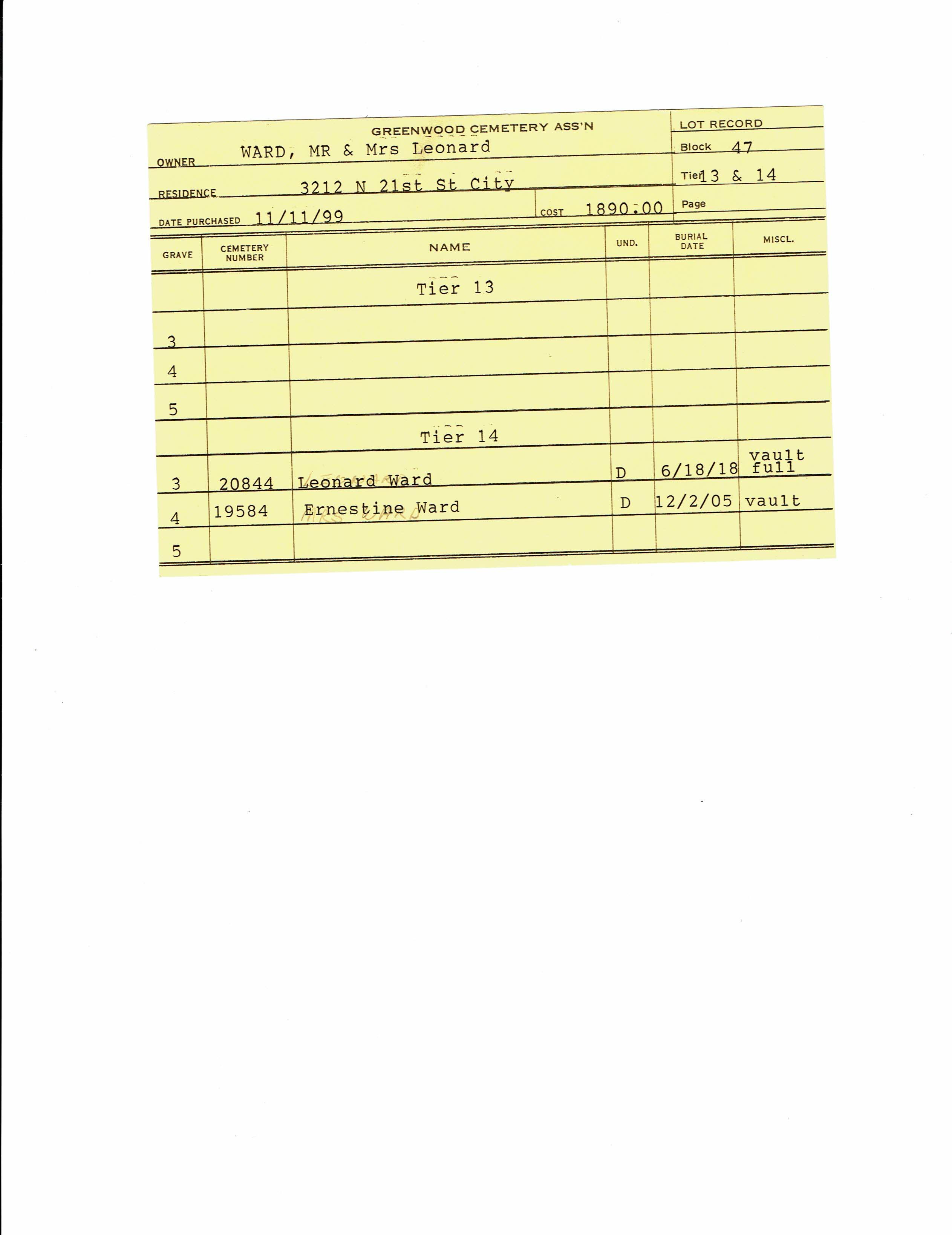 Block 47, Lot 13, Grave 21