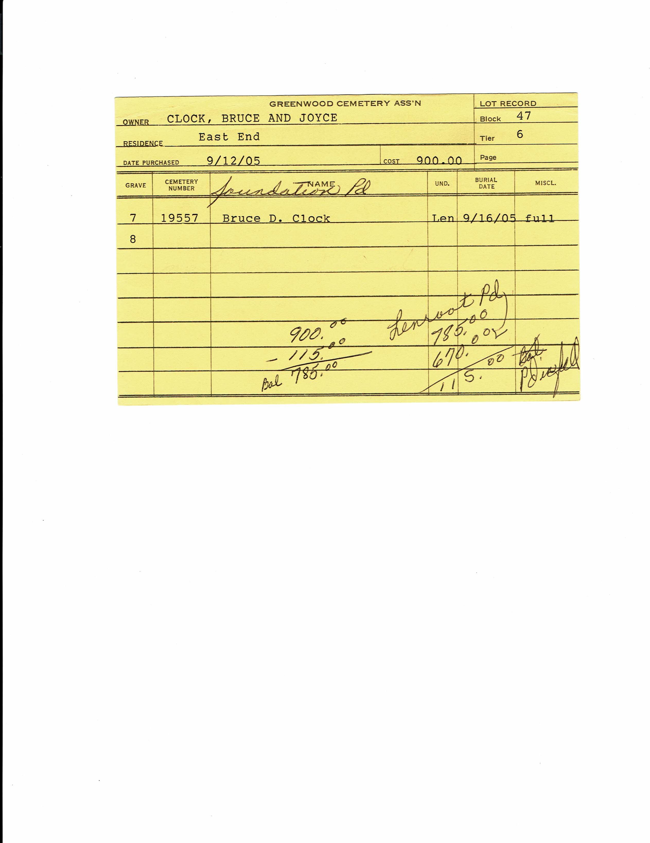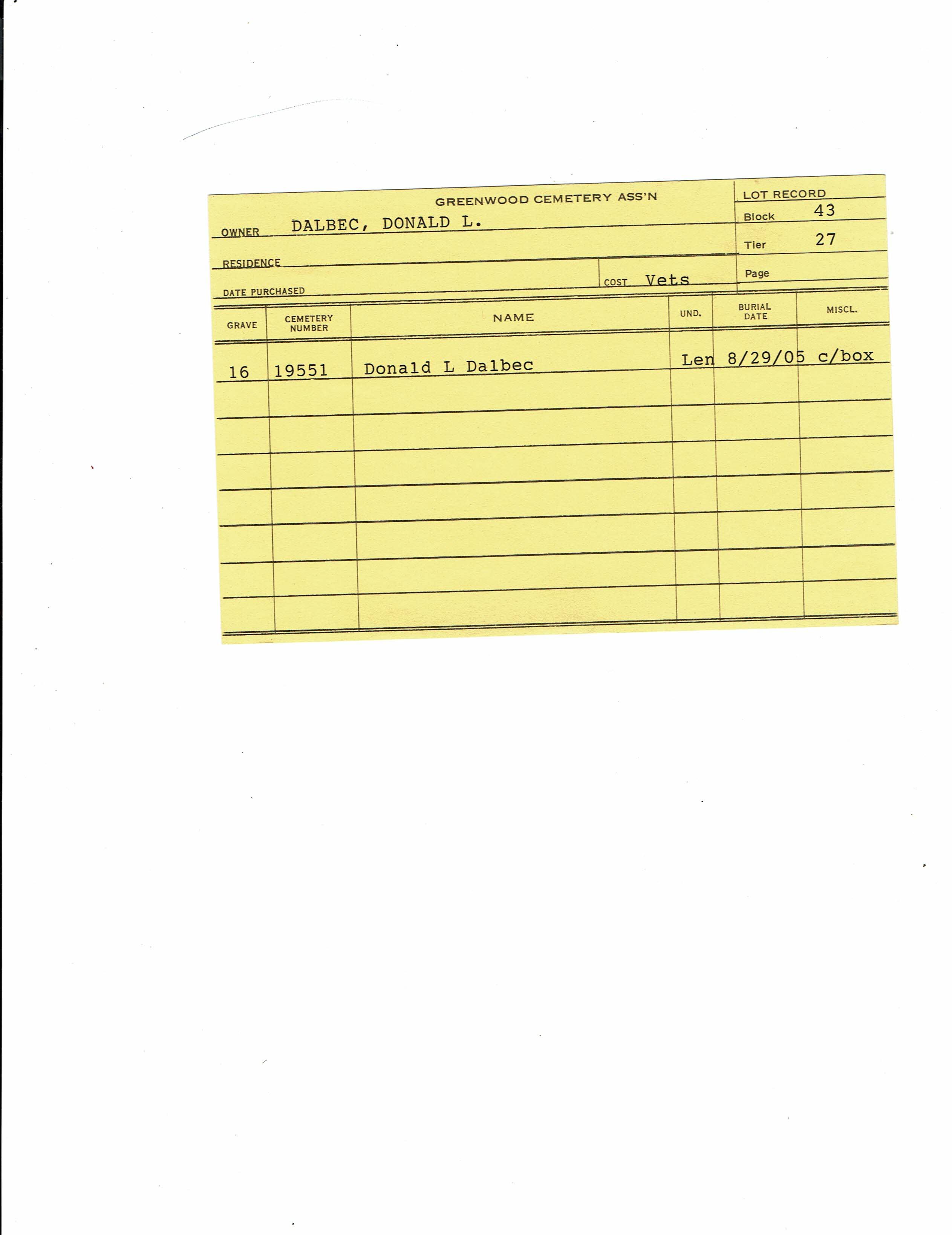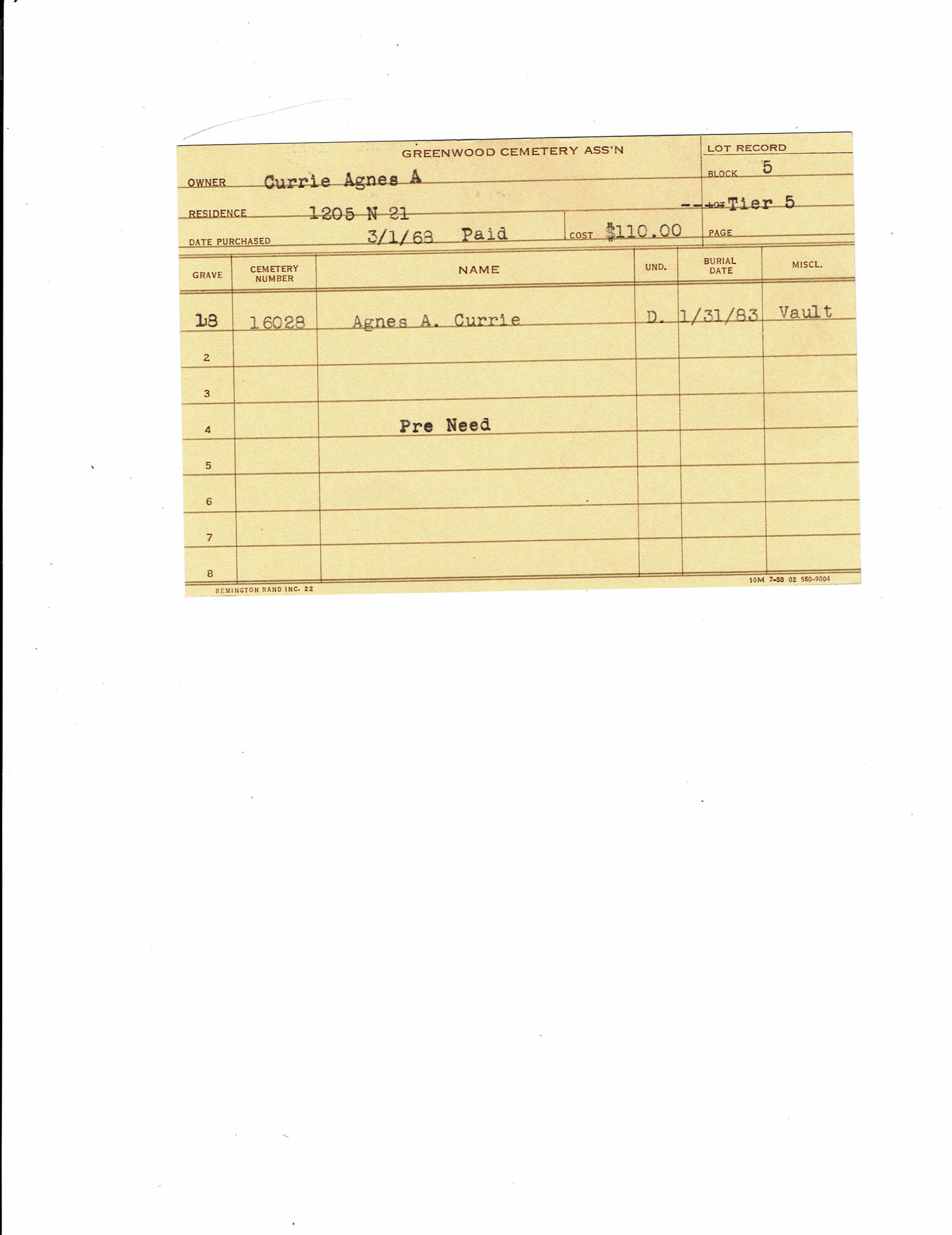 Block 47, Tier 13, Lot 1, Grave 19