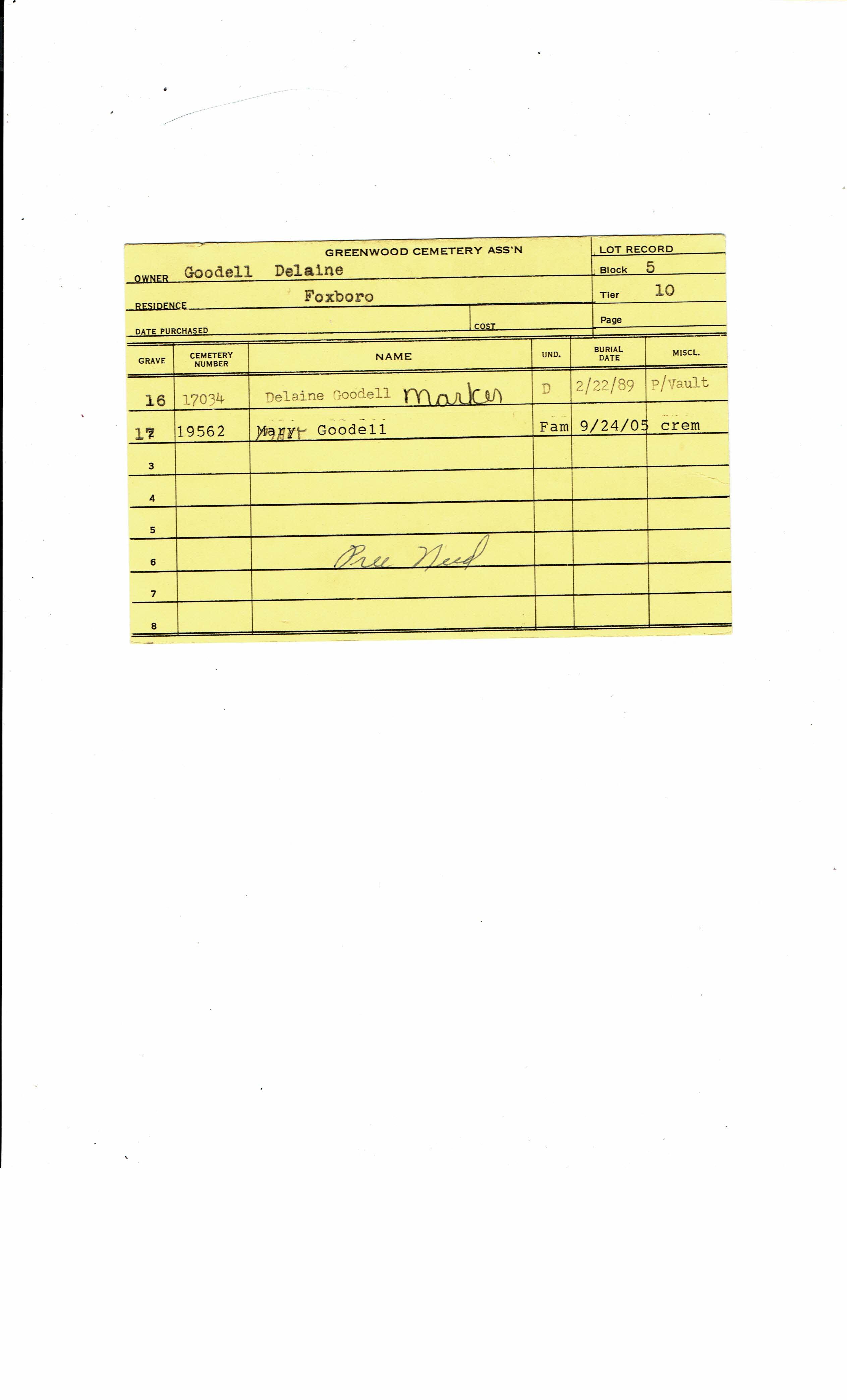 Greenwood Cemetery Association Online Records