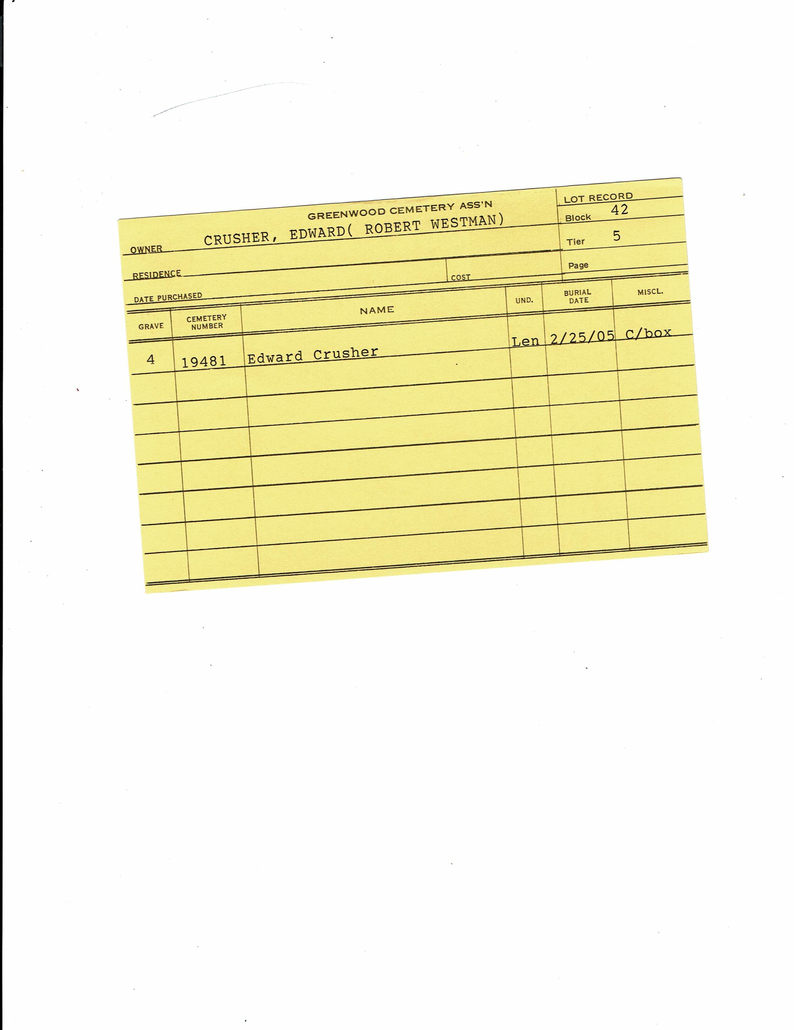 Block 43, Tier 18, Lot 1, Grave 01
