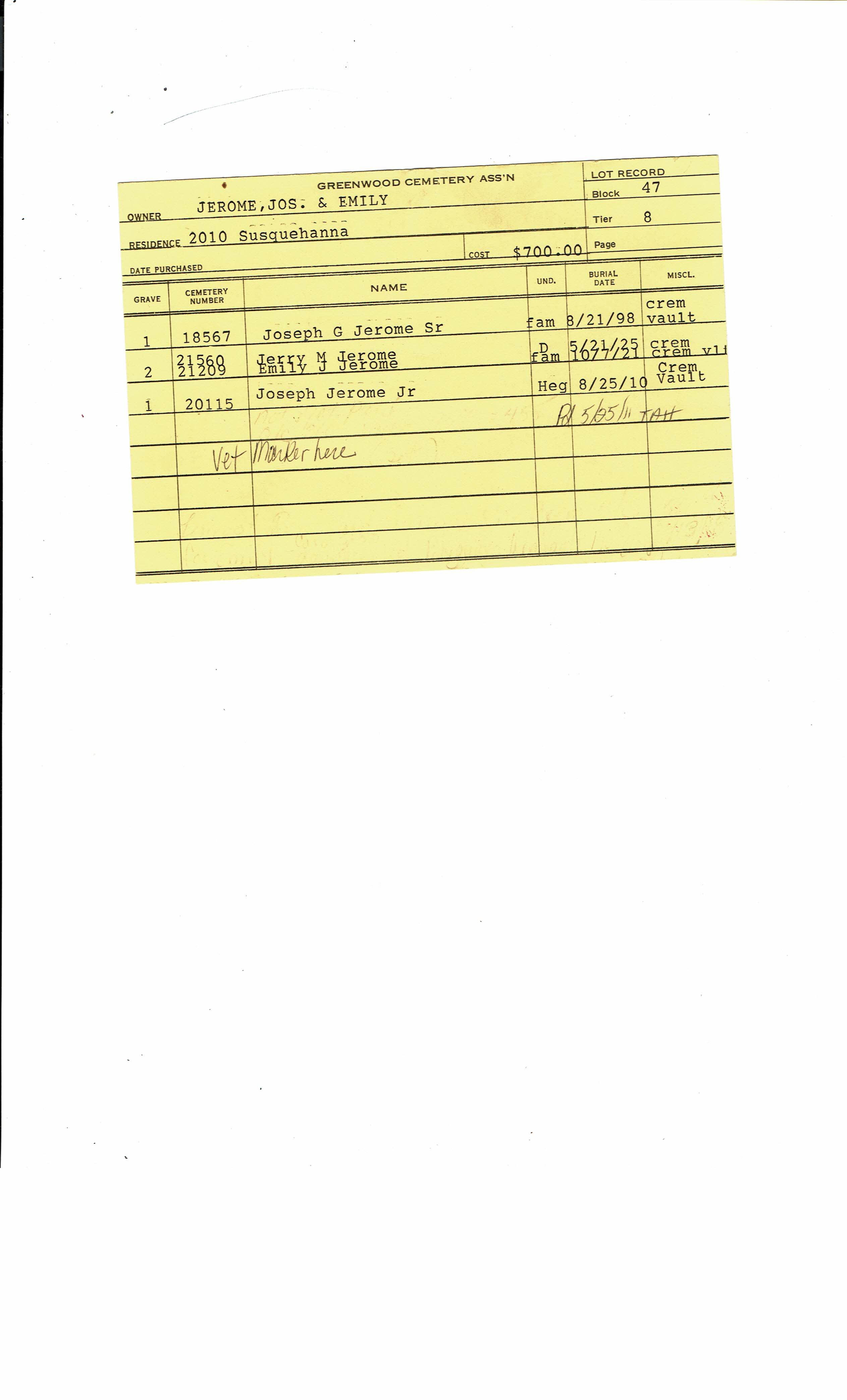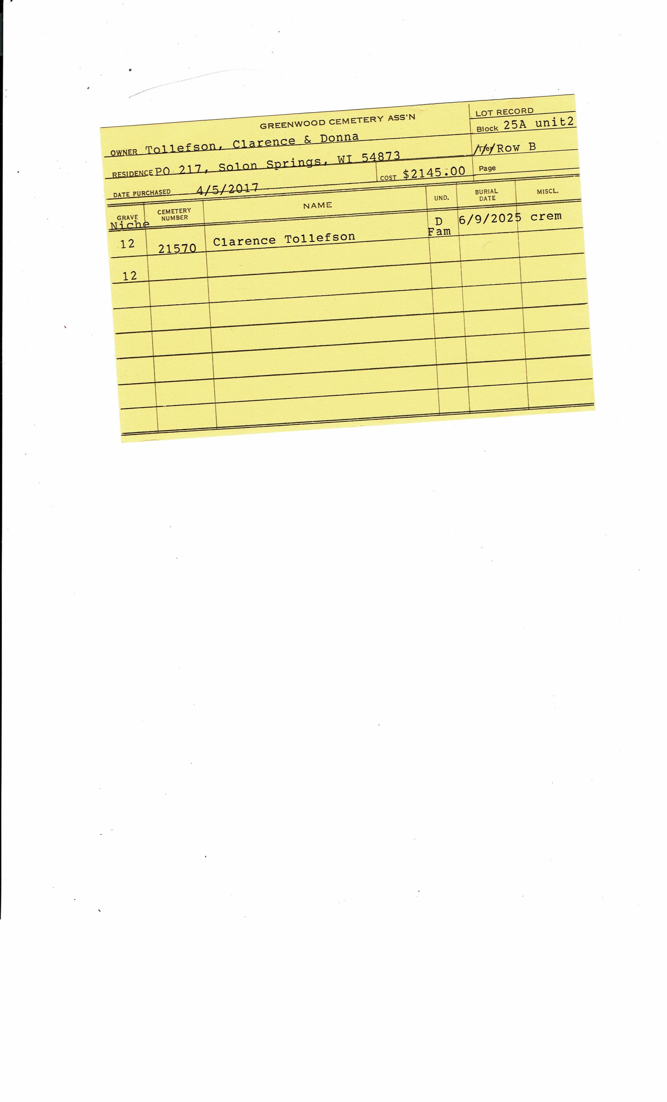 Block 25A, Tier Row B, Lot Unit 2, Grave NIche 12